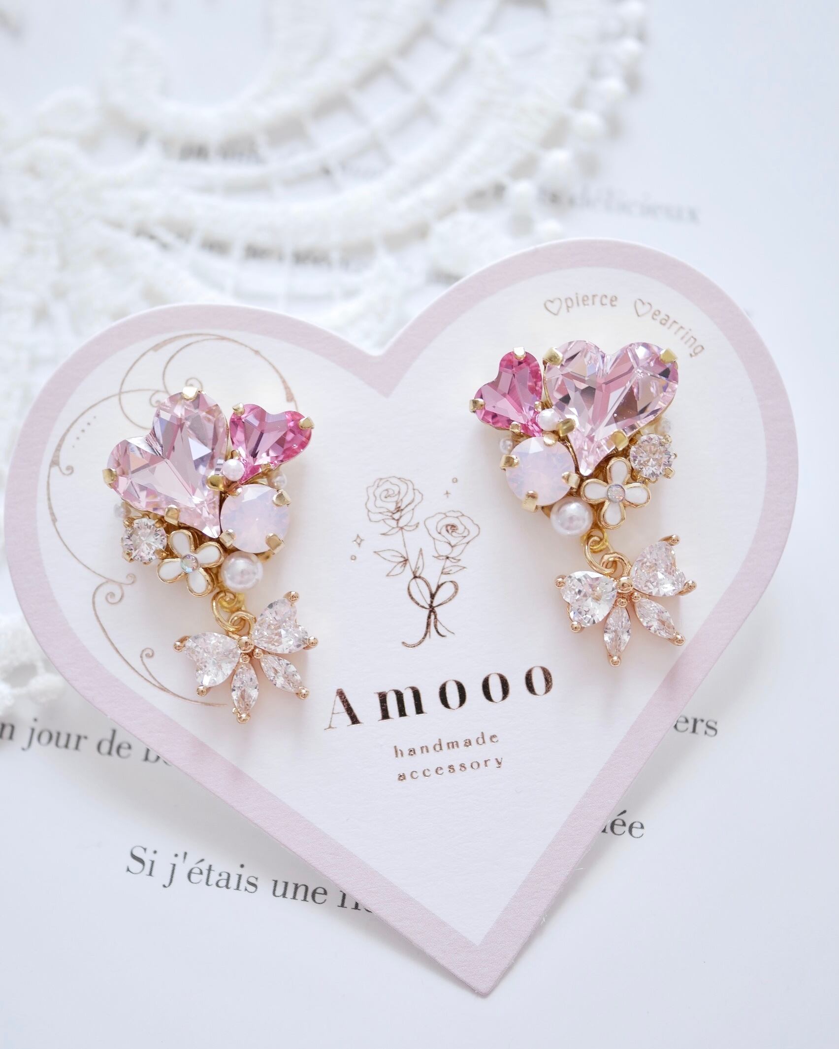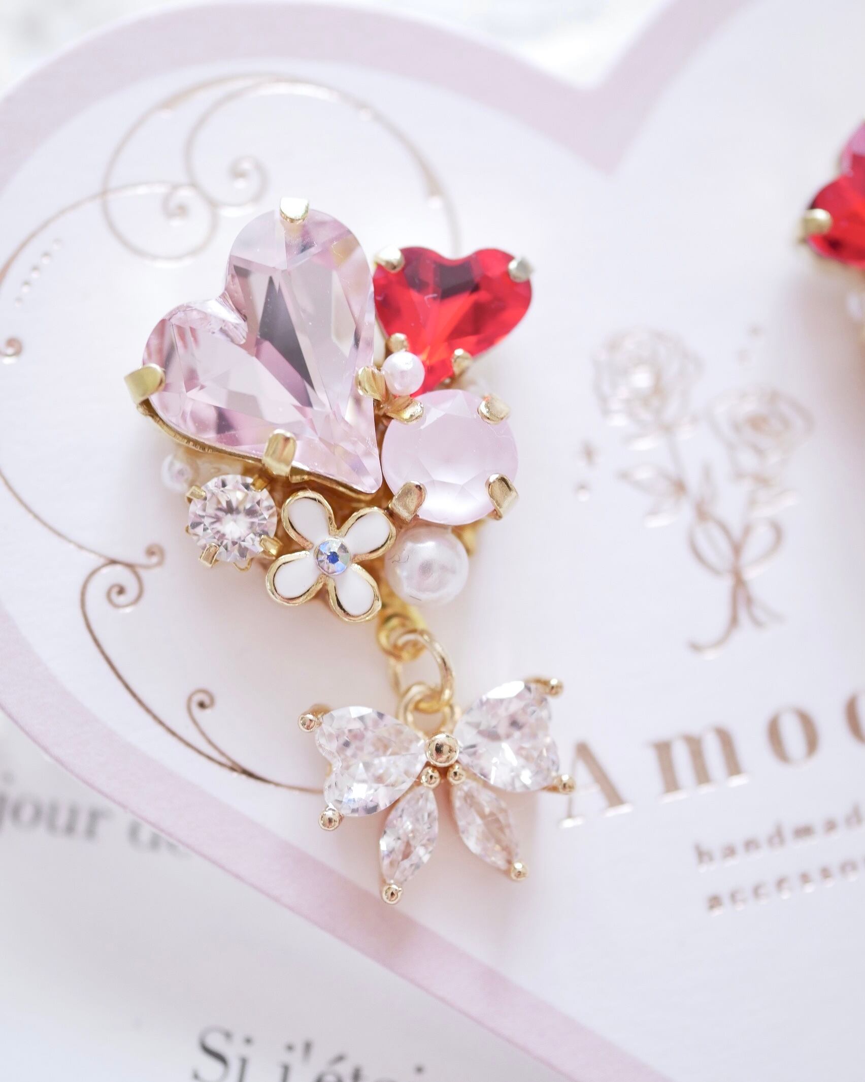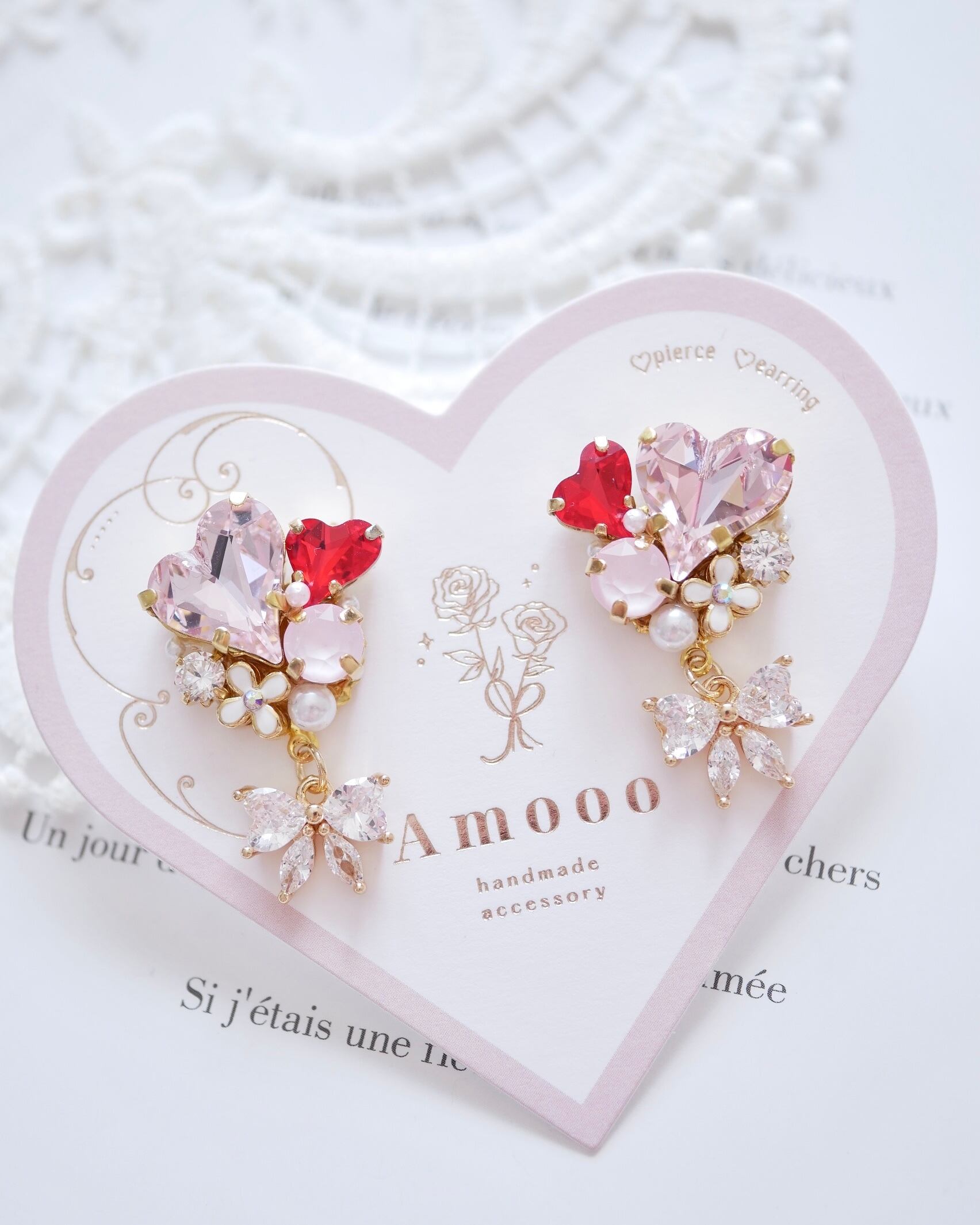 331 Wスウィートハートラブビジューピアス/イヤリング
