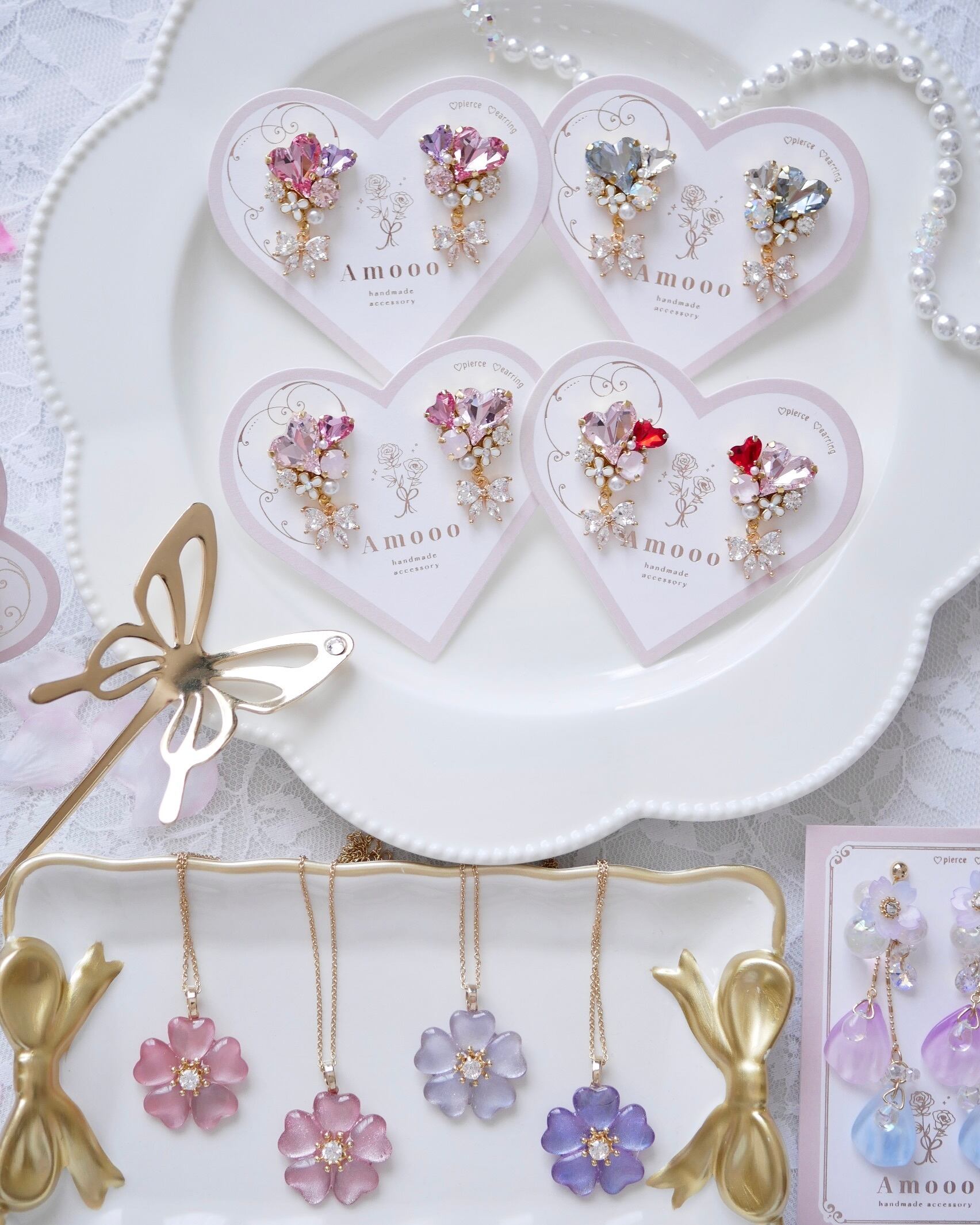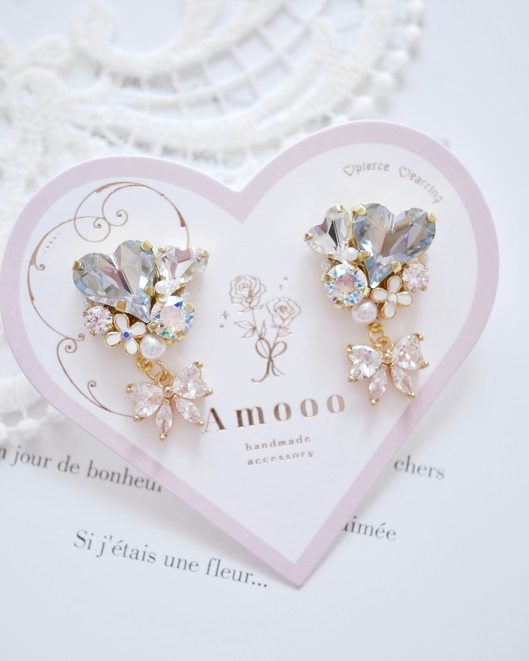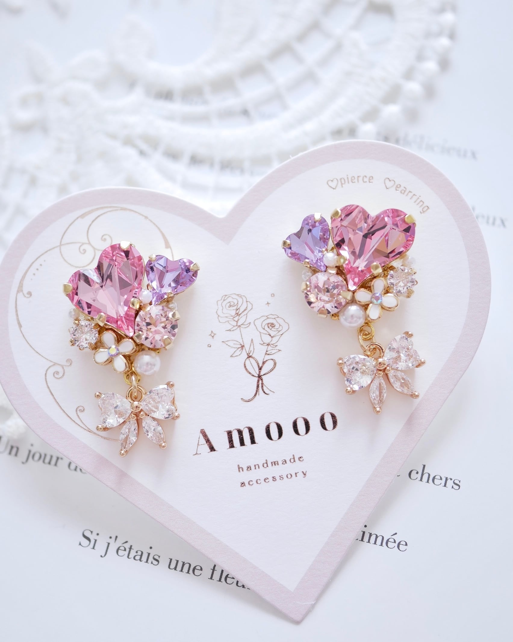331 Wスウィートハートラブビジューピアス/イヤリング