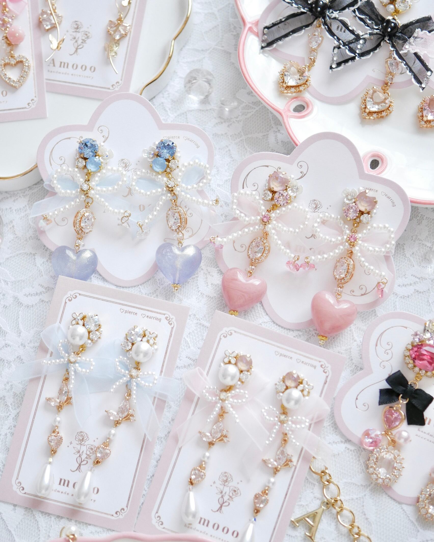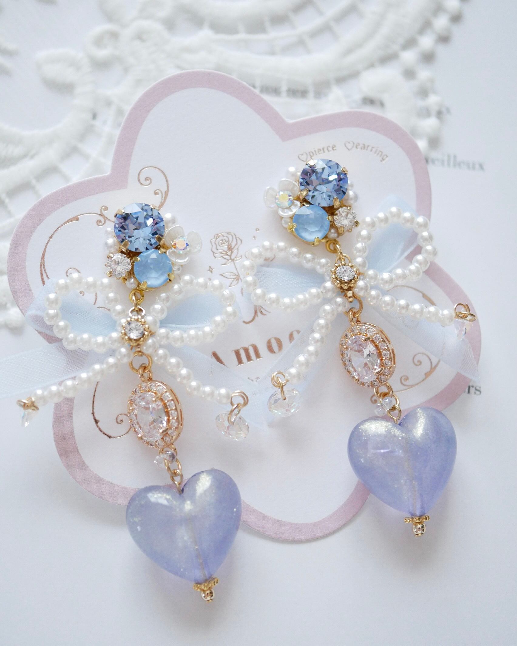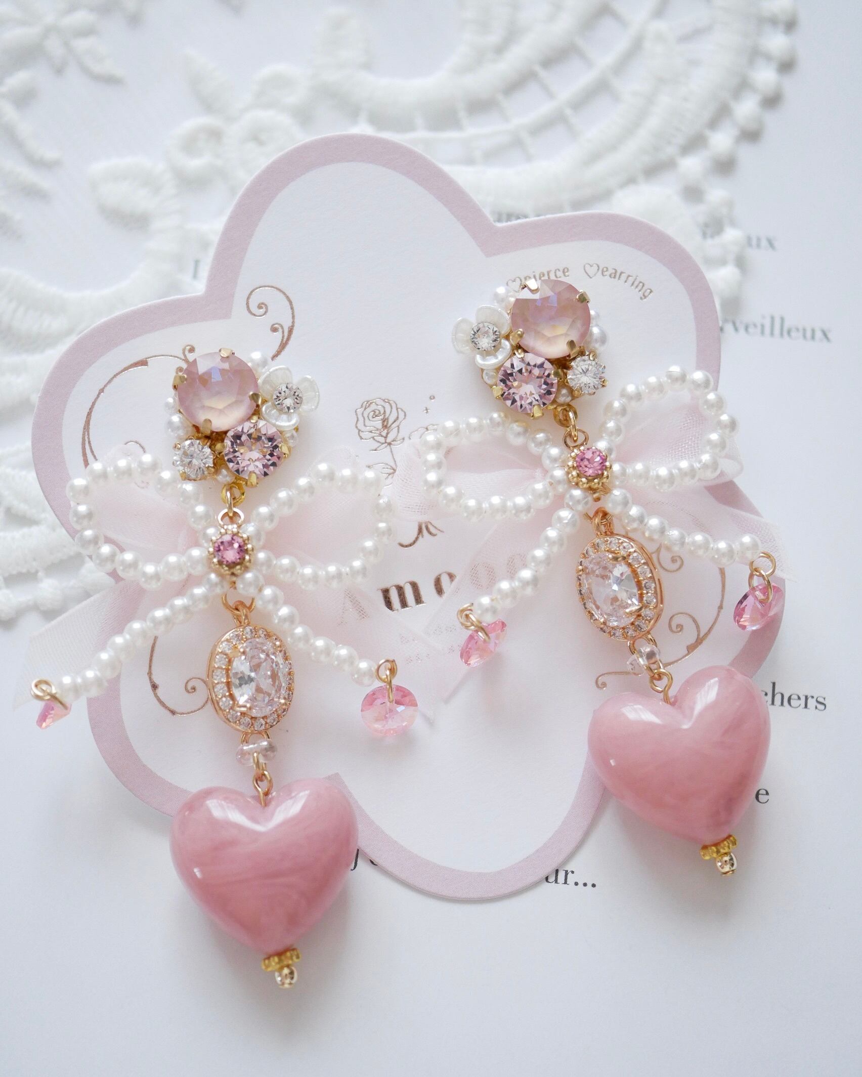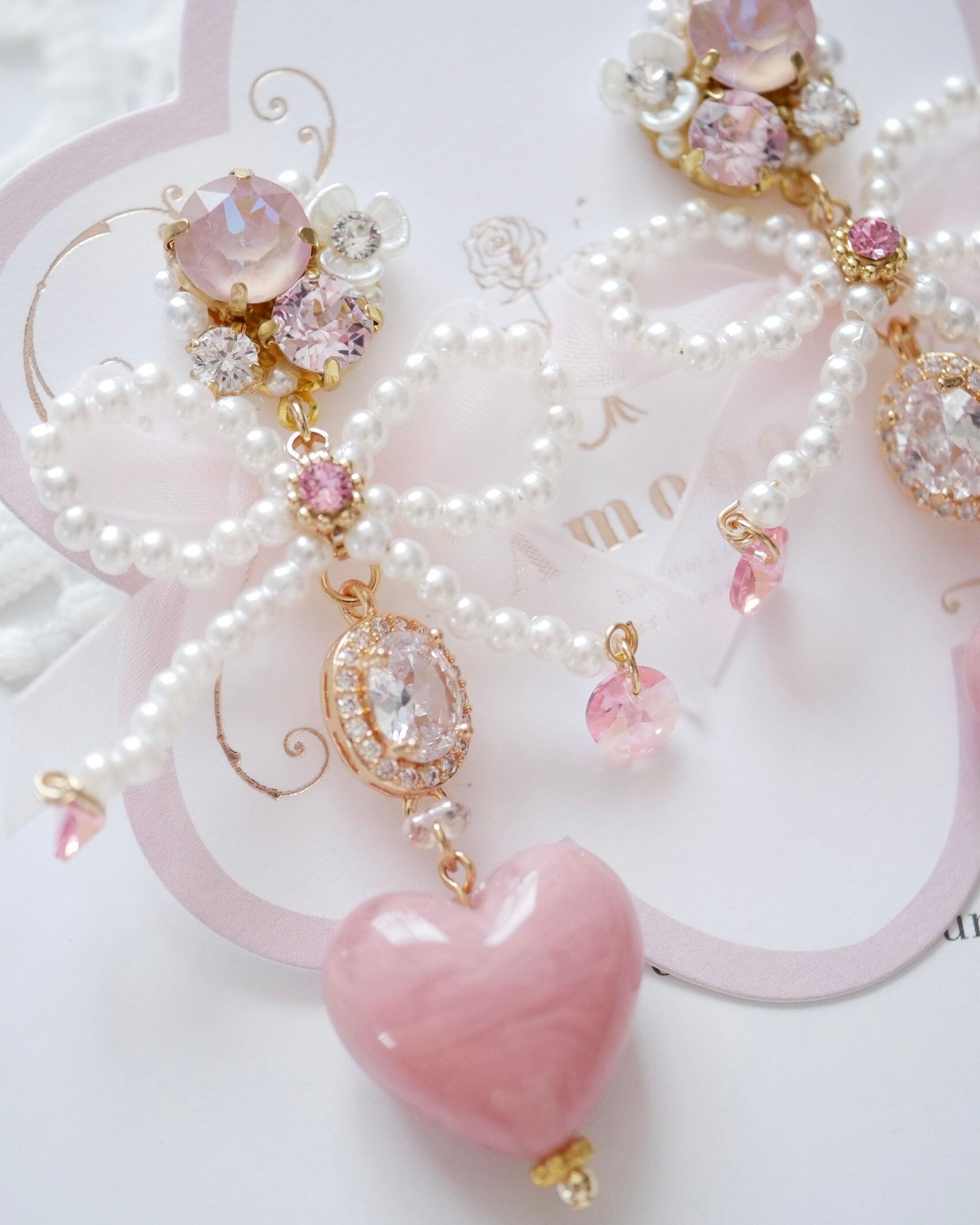しっとりと艶めくハートモチーフが揺れ、横顔をエレガントに彩ります。