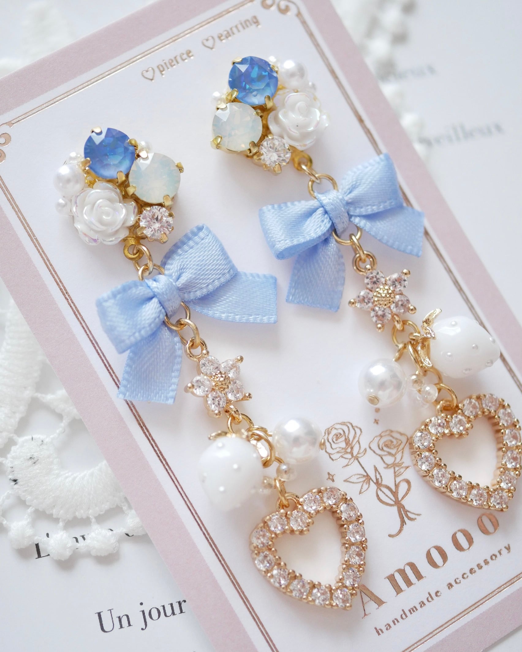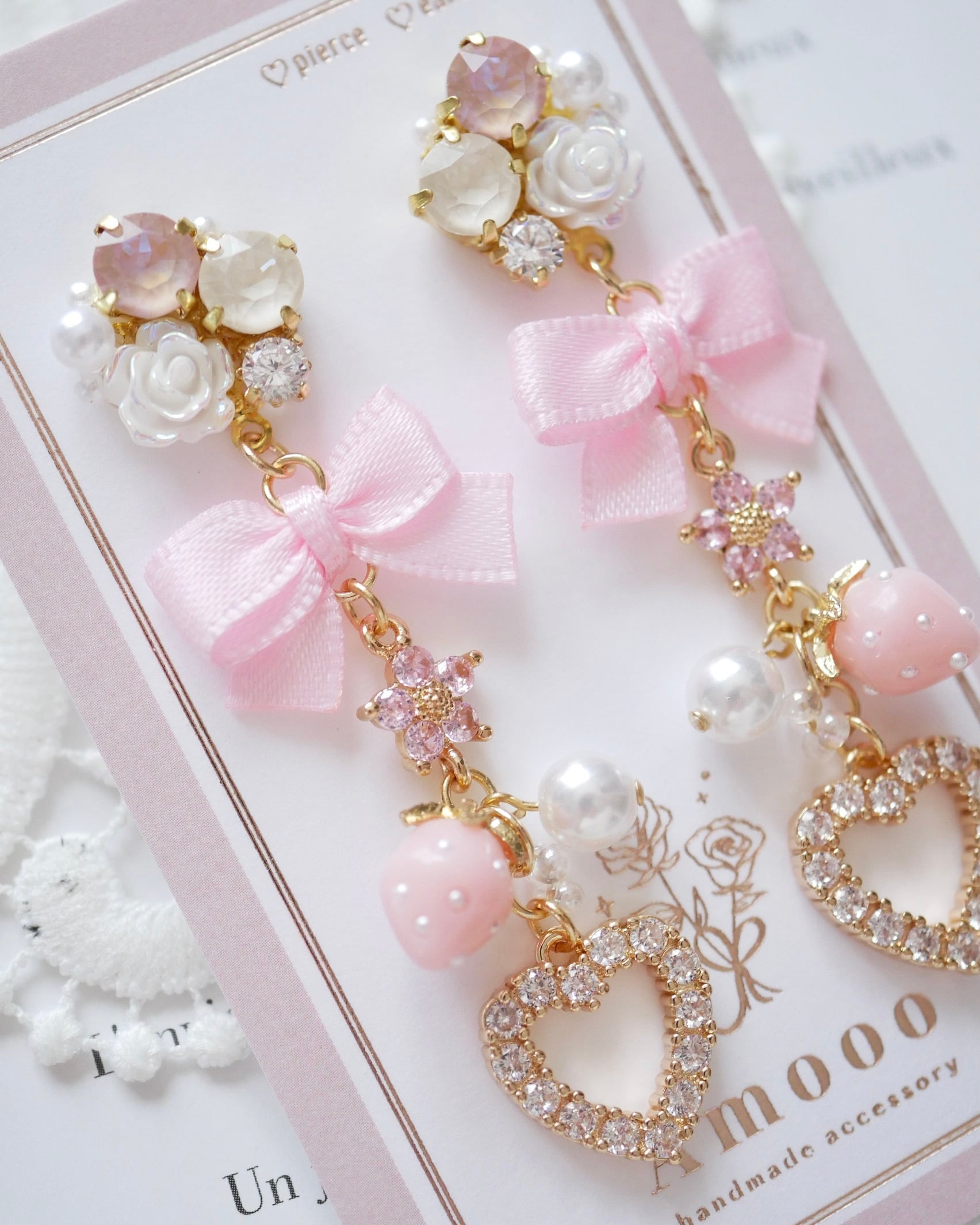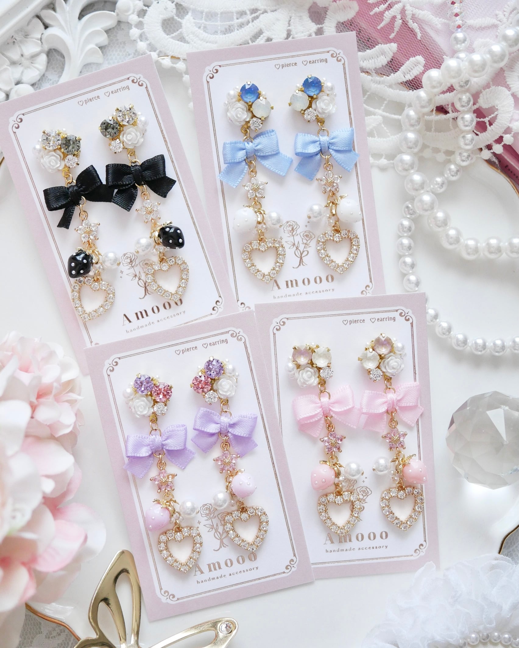 【再入荷】7816 プリンセスガーリーハートフープビジューピアス/イヤリング