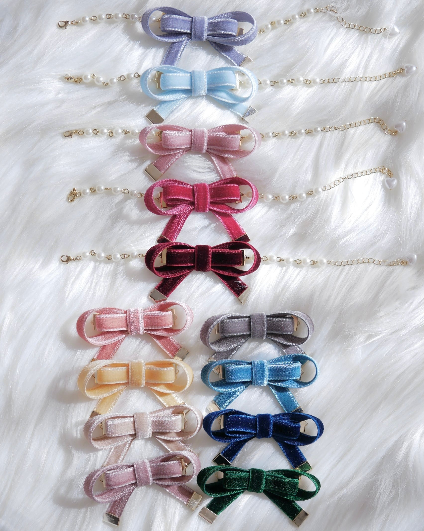 7903 ベルベットスウィートリボンパールチェーンブレスレット