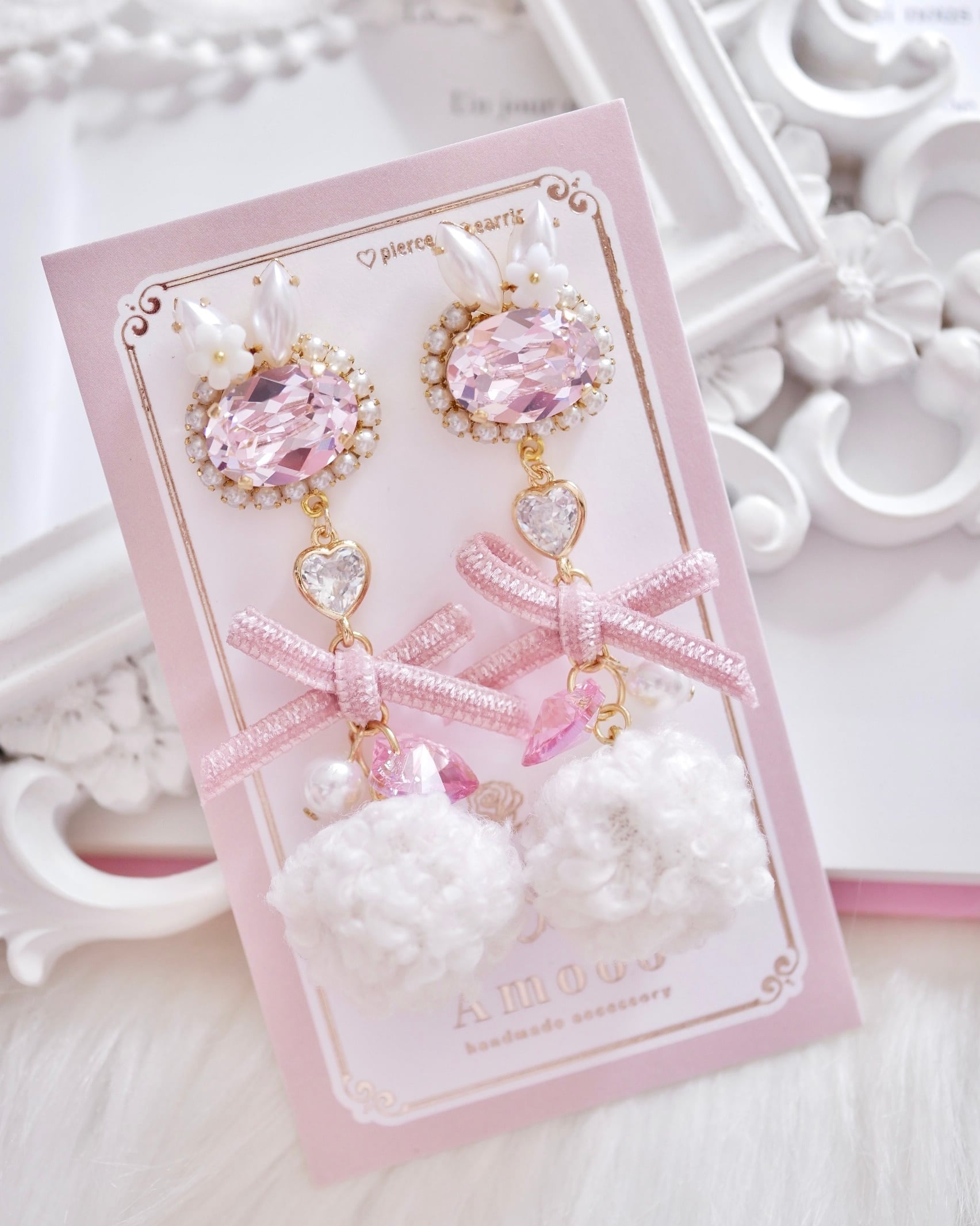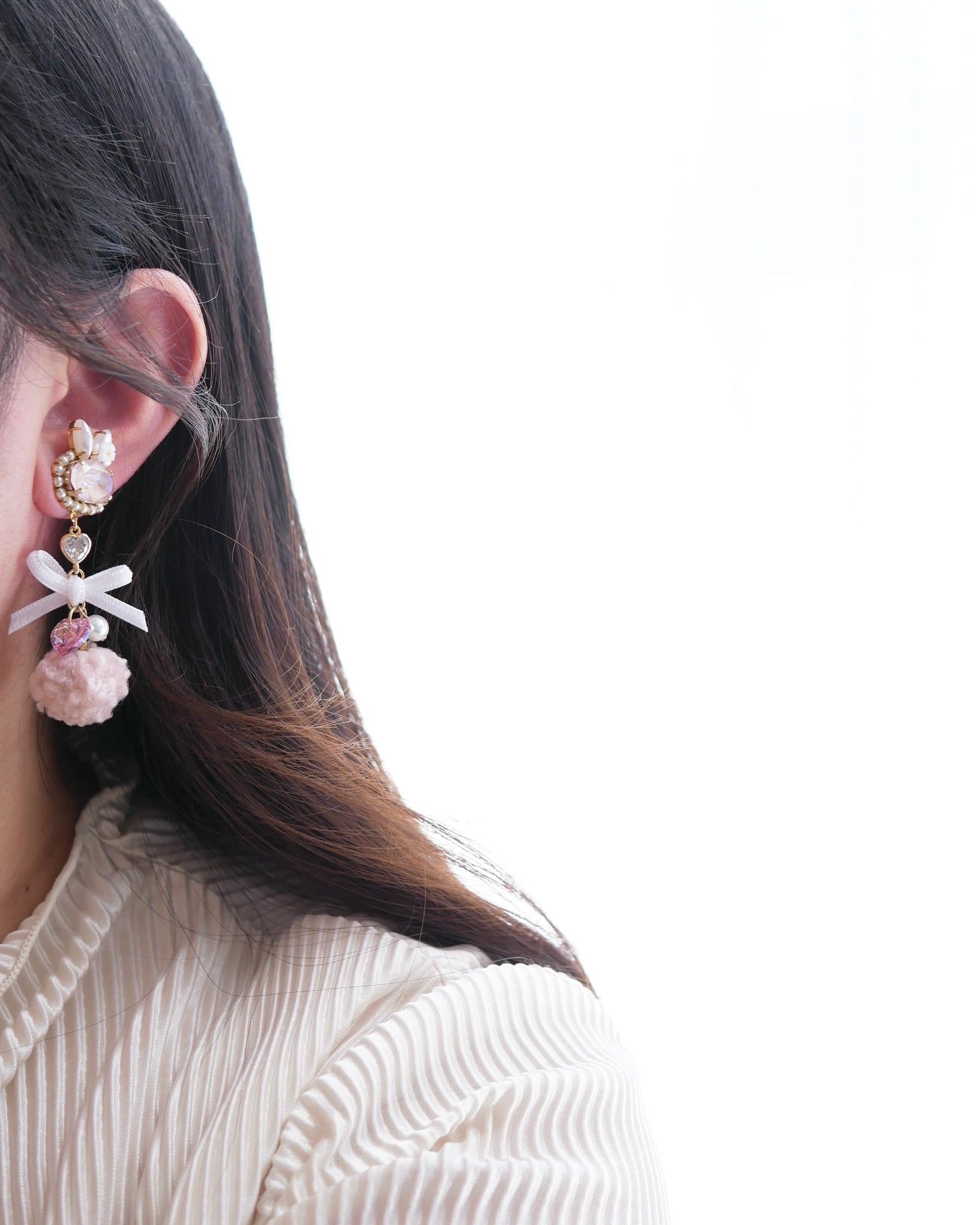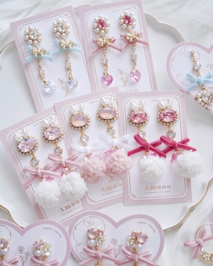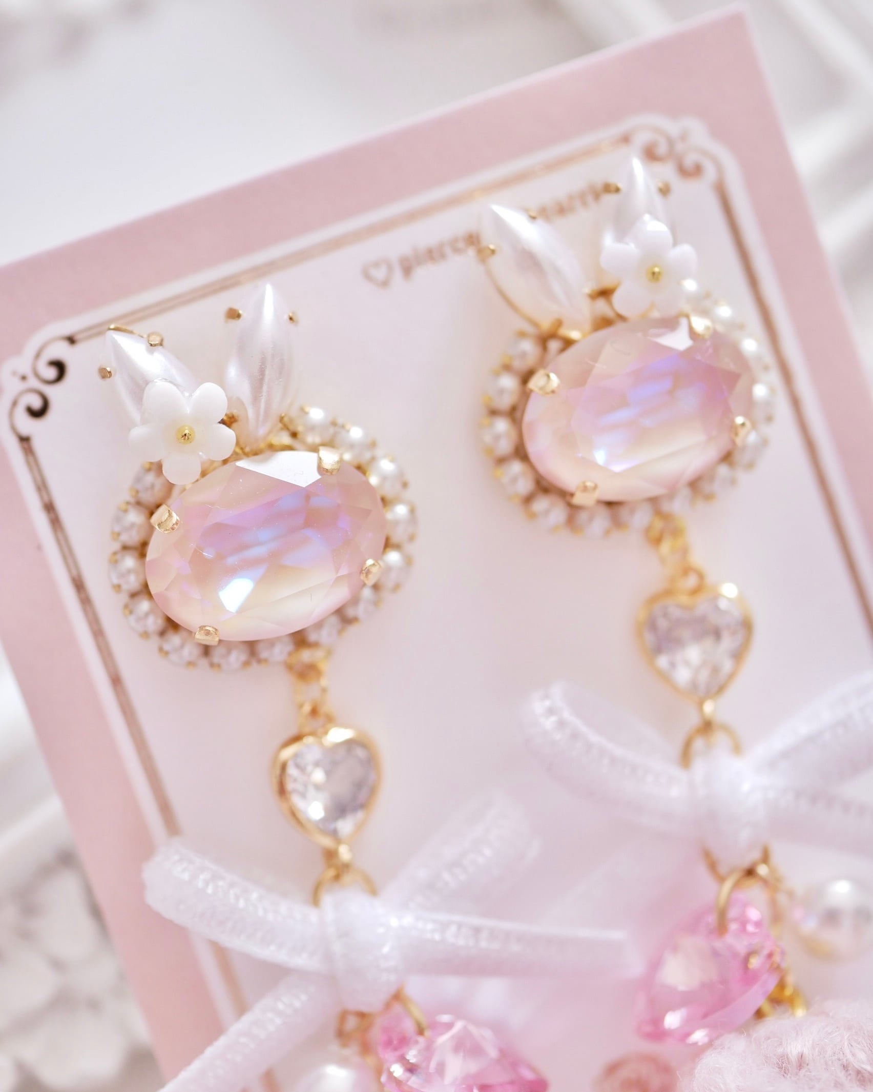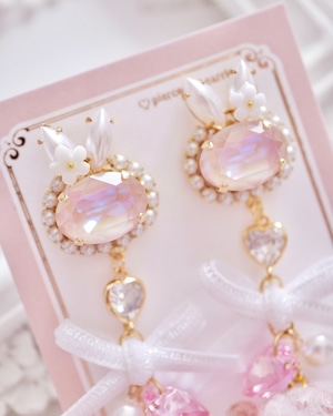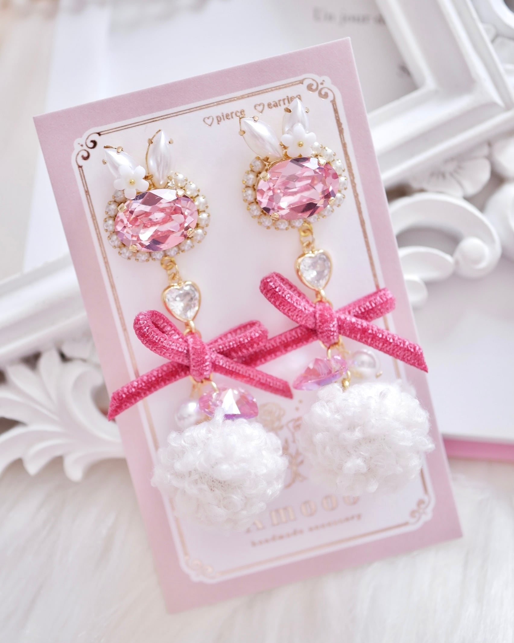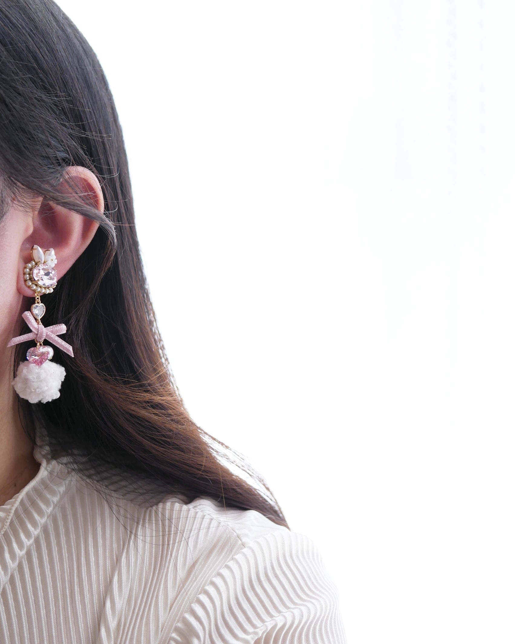 7912 うさぎビジュー×しっぽチャームピアス/イヤリング