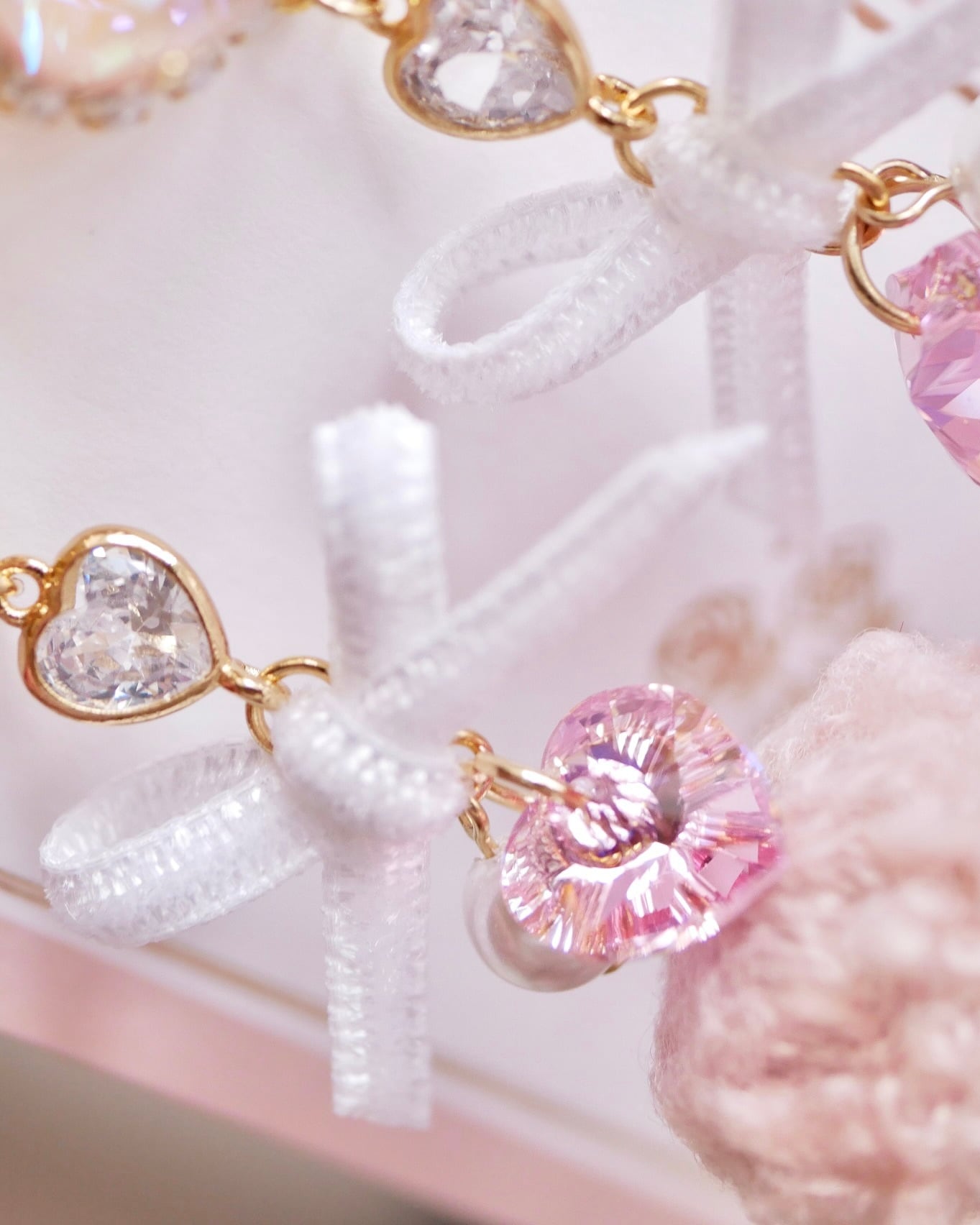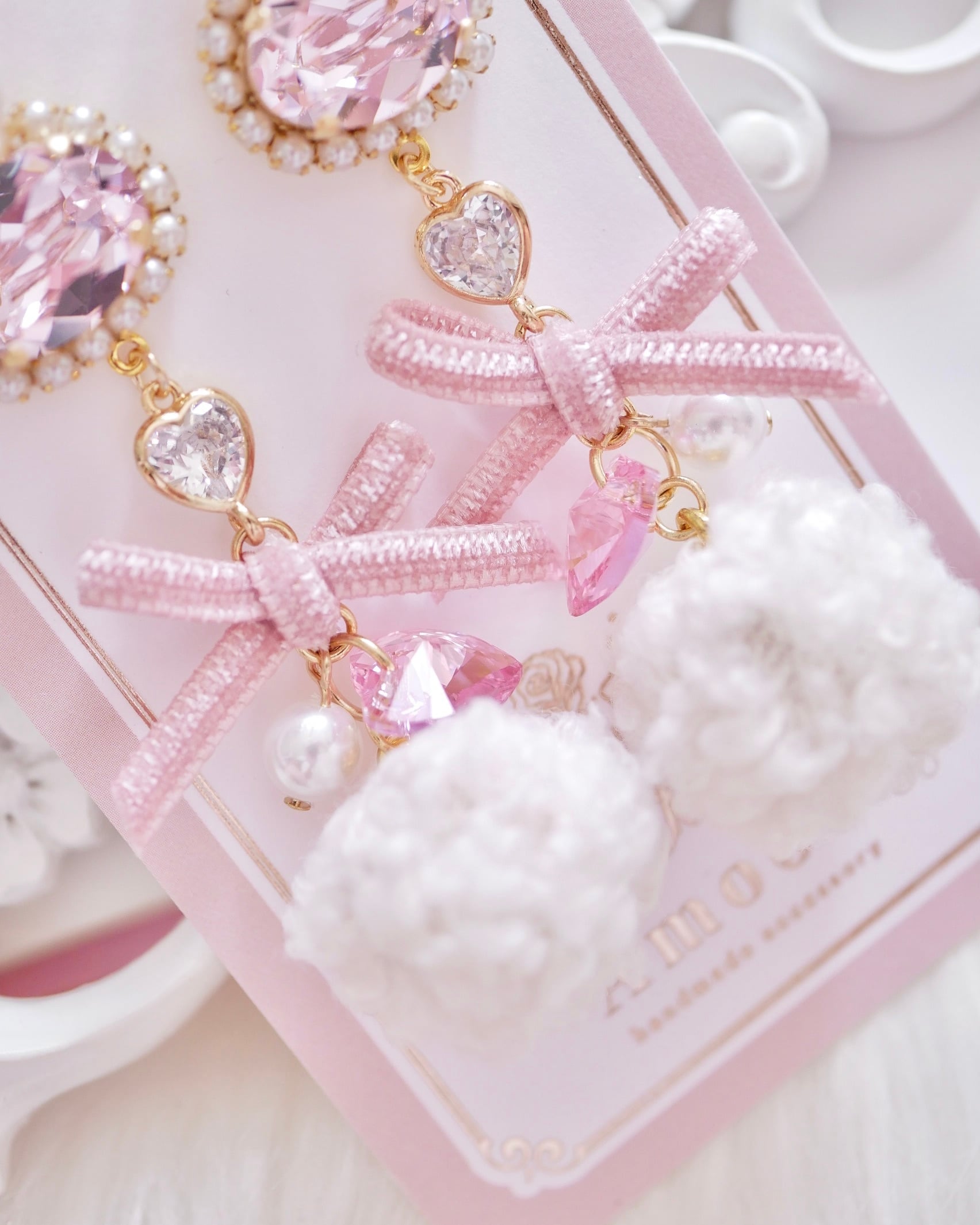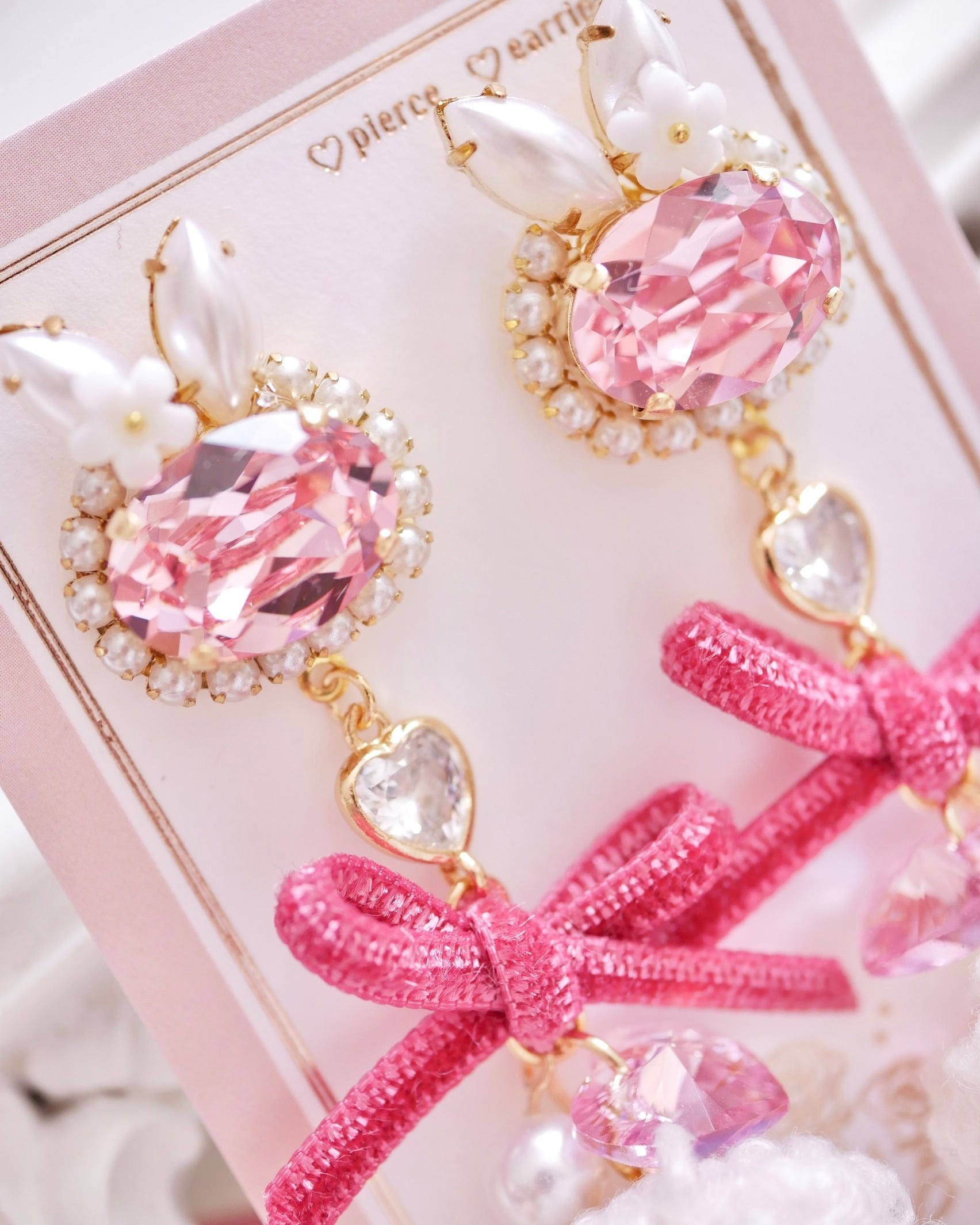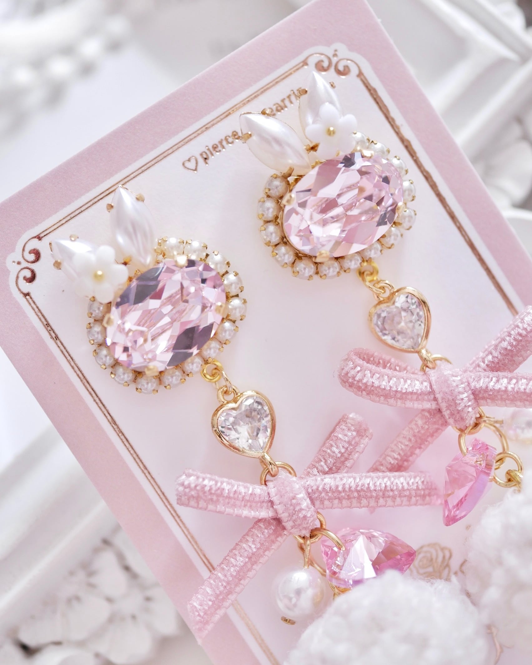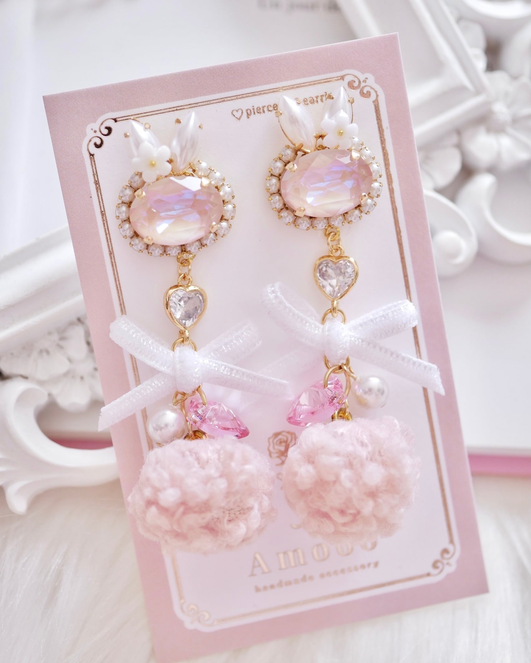 7912 うさぎビジュー×しっぽチャームピアス/イヤリング
