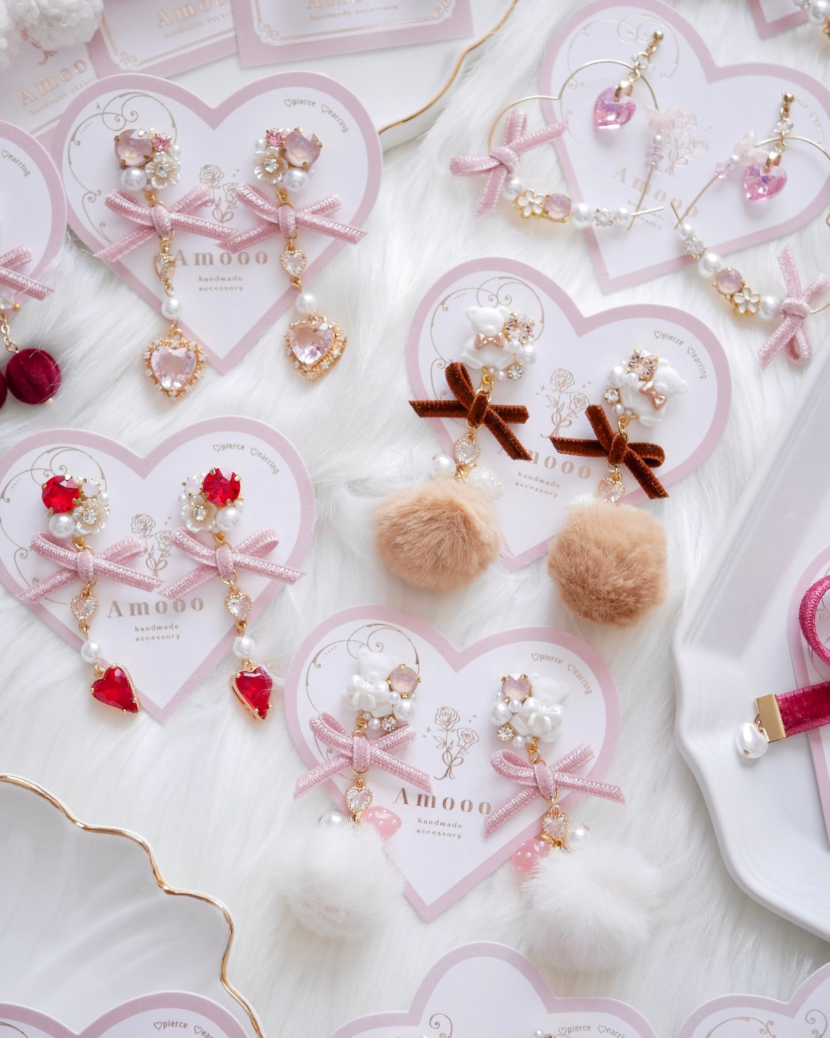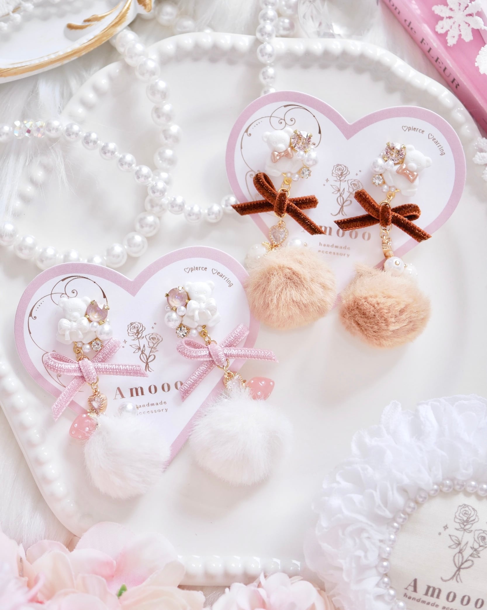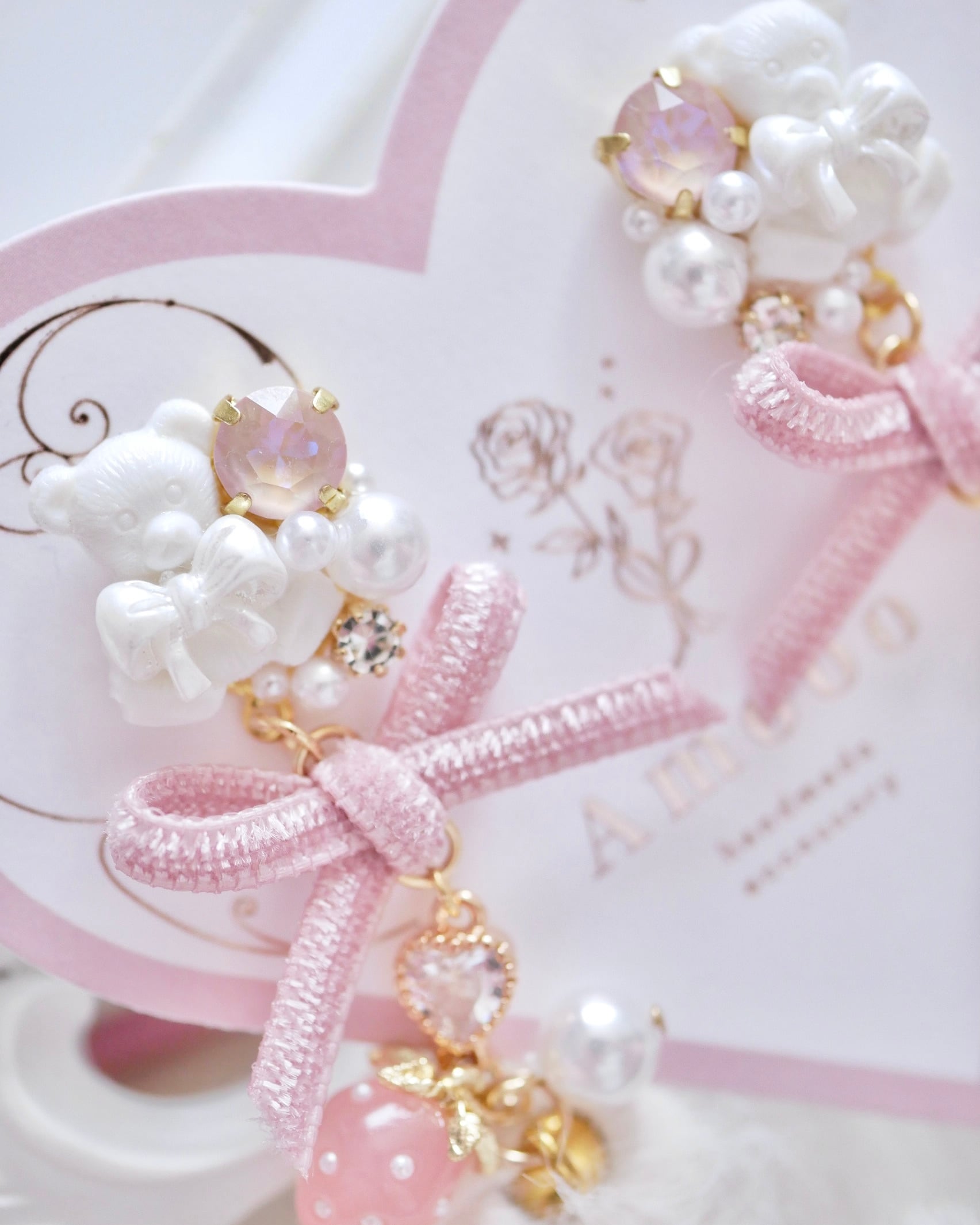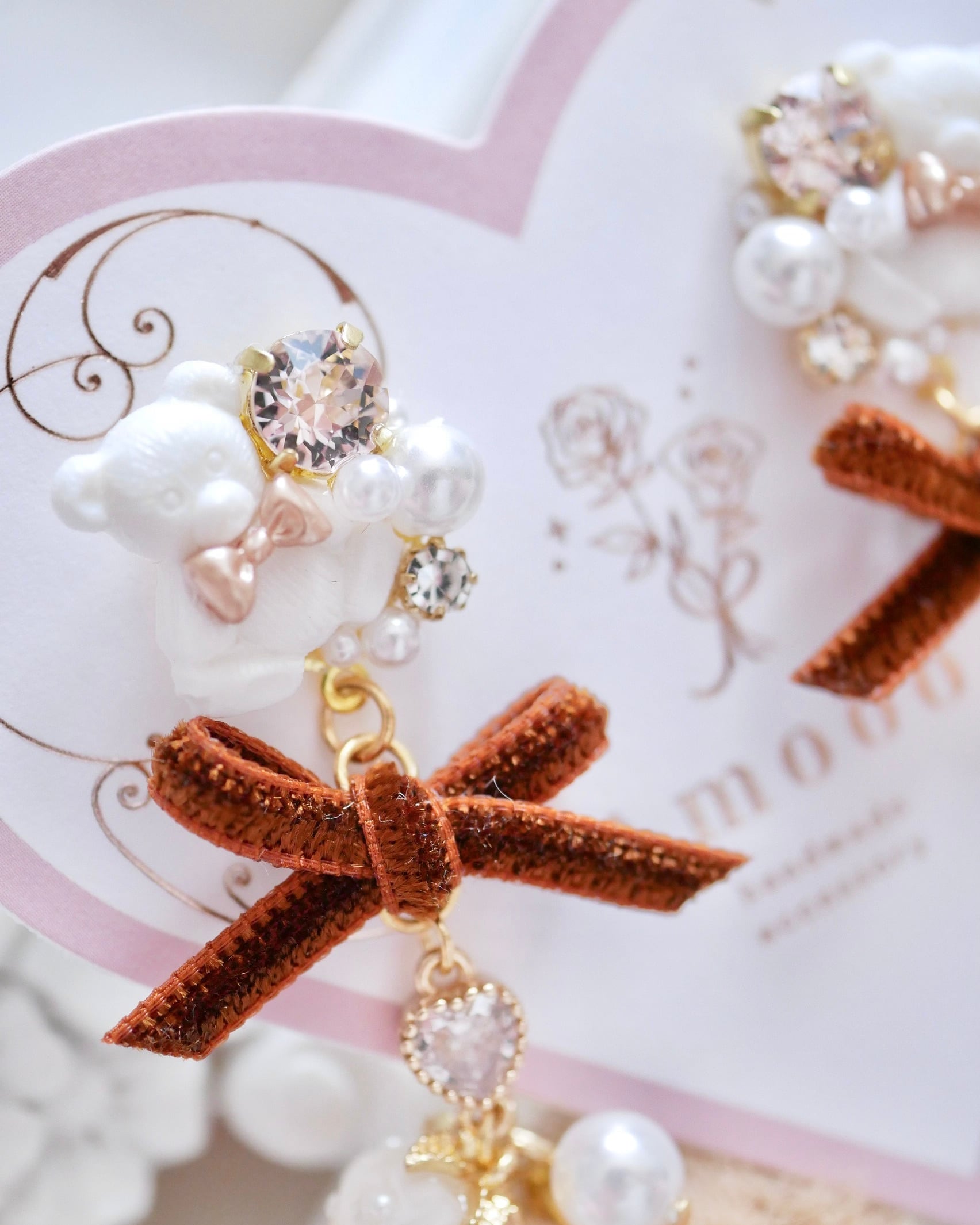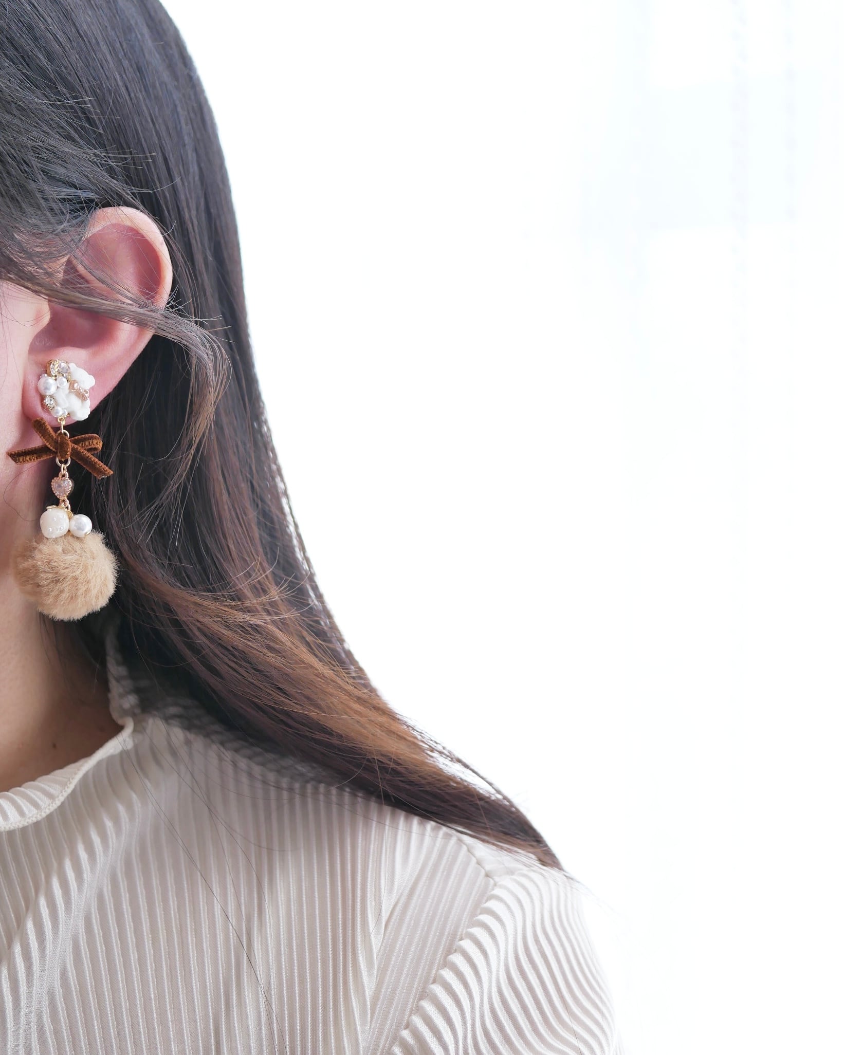 7917 ベアビジューぽんぽんチャームピアス/イヤリング