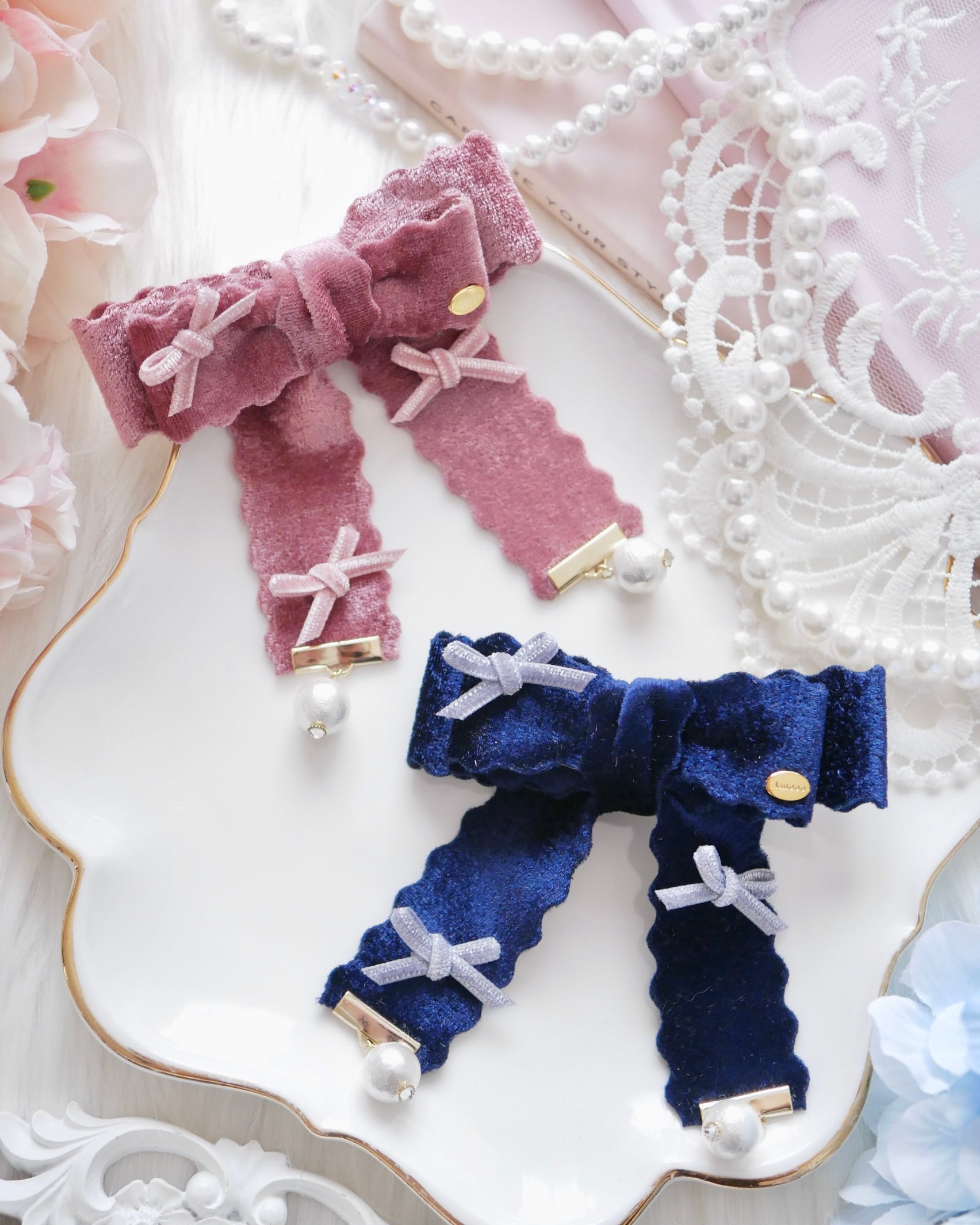 7101 ガーリースカラップベルベットリボンヘアクリップ/バレッタ