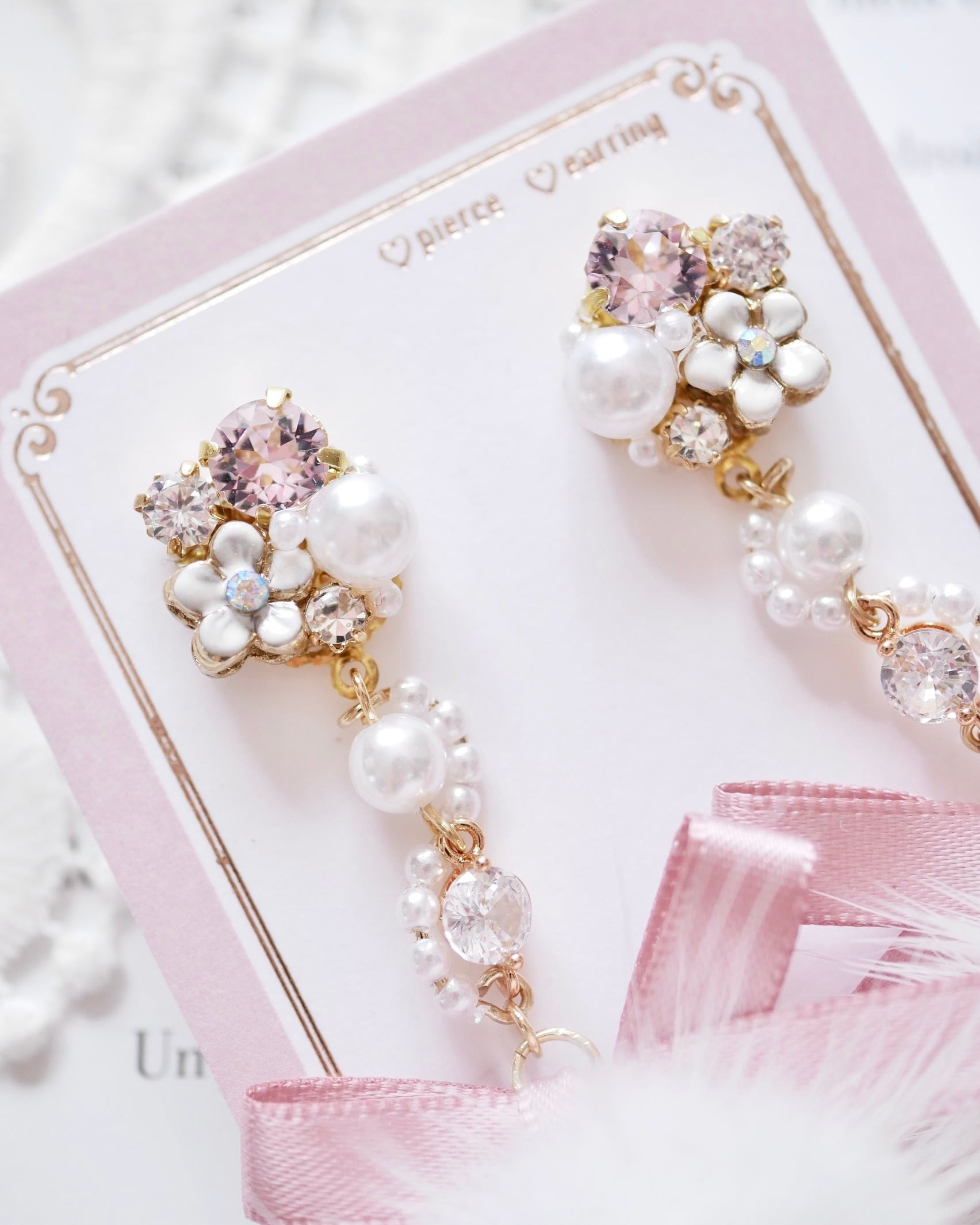 【限定】7108 フラワービジューパールウェーブファーピアス/イヤリング