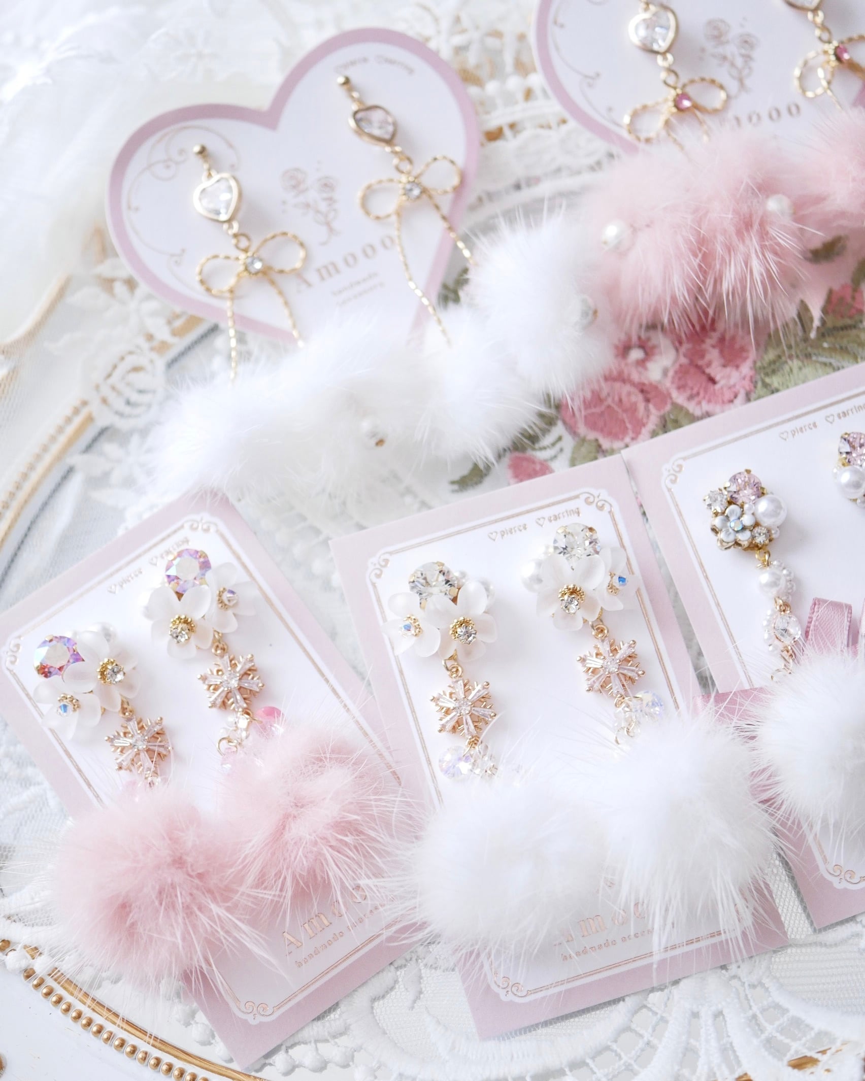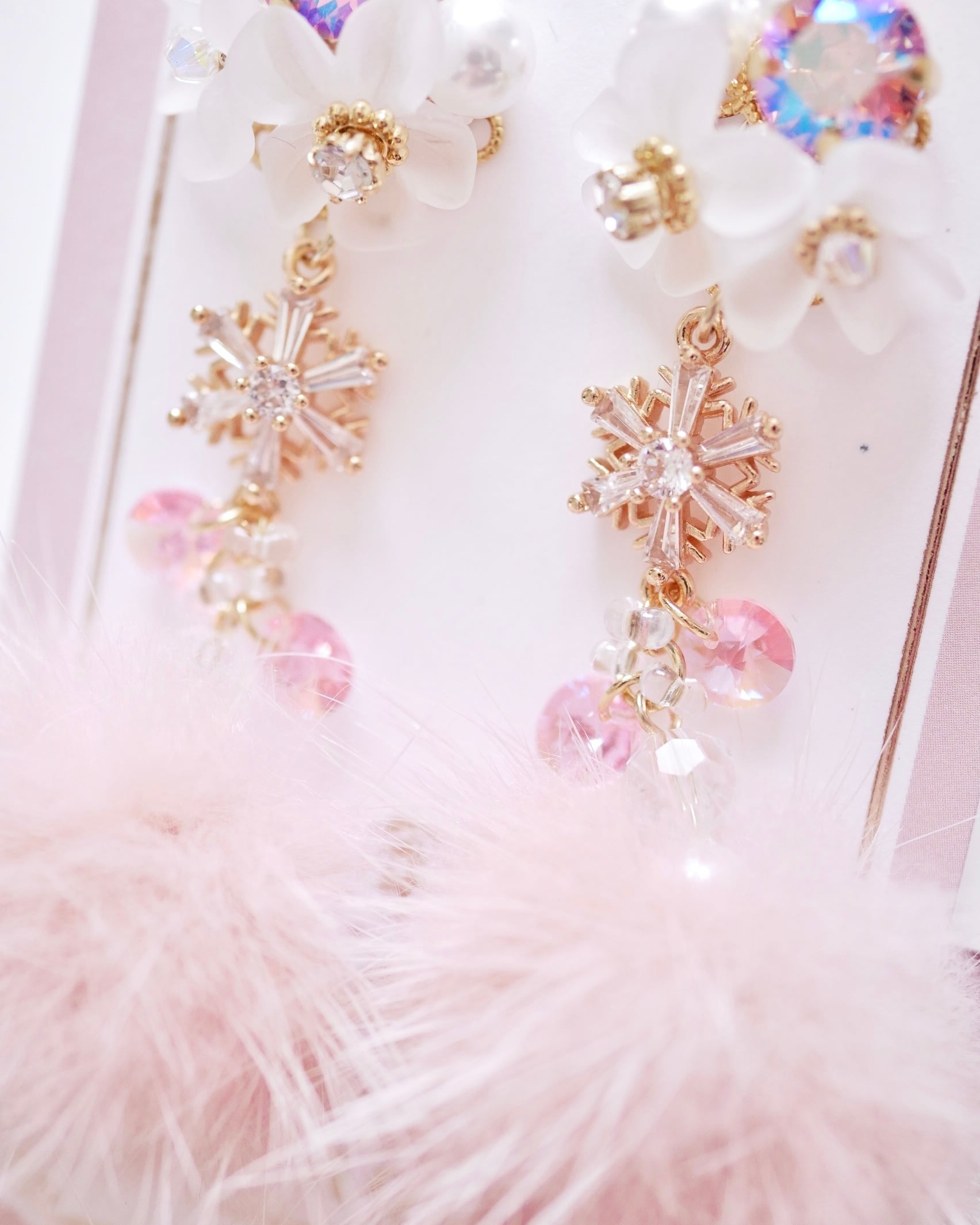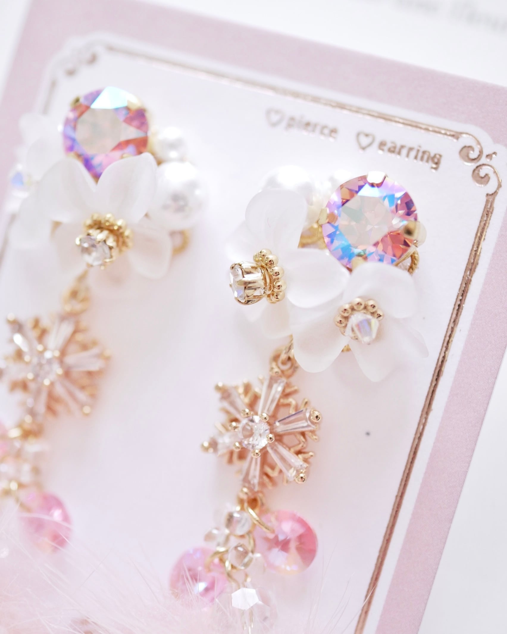 7109 Bloomビジューシャインスノーファーピアス/イヤリング