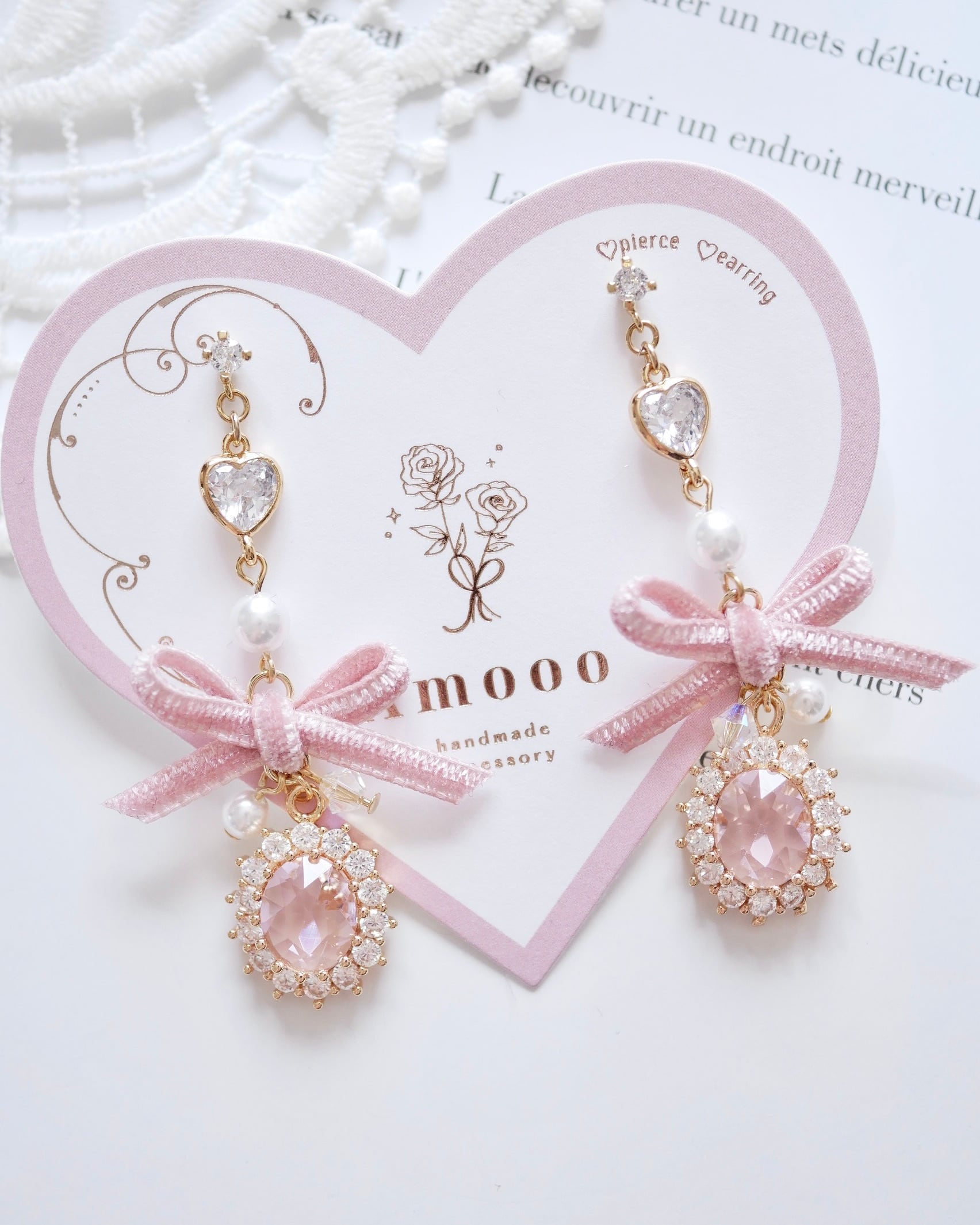 71013 ベルベットリボンジルコニアオーバルチャームピアス/イヤリング