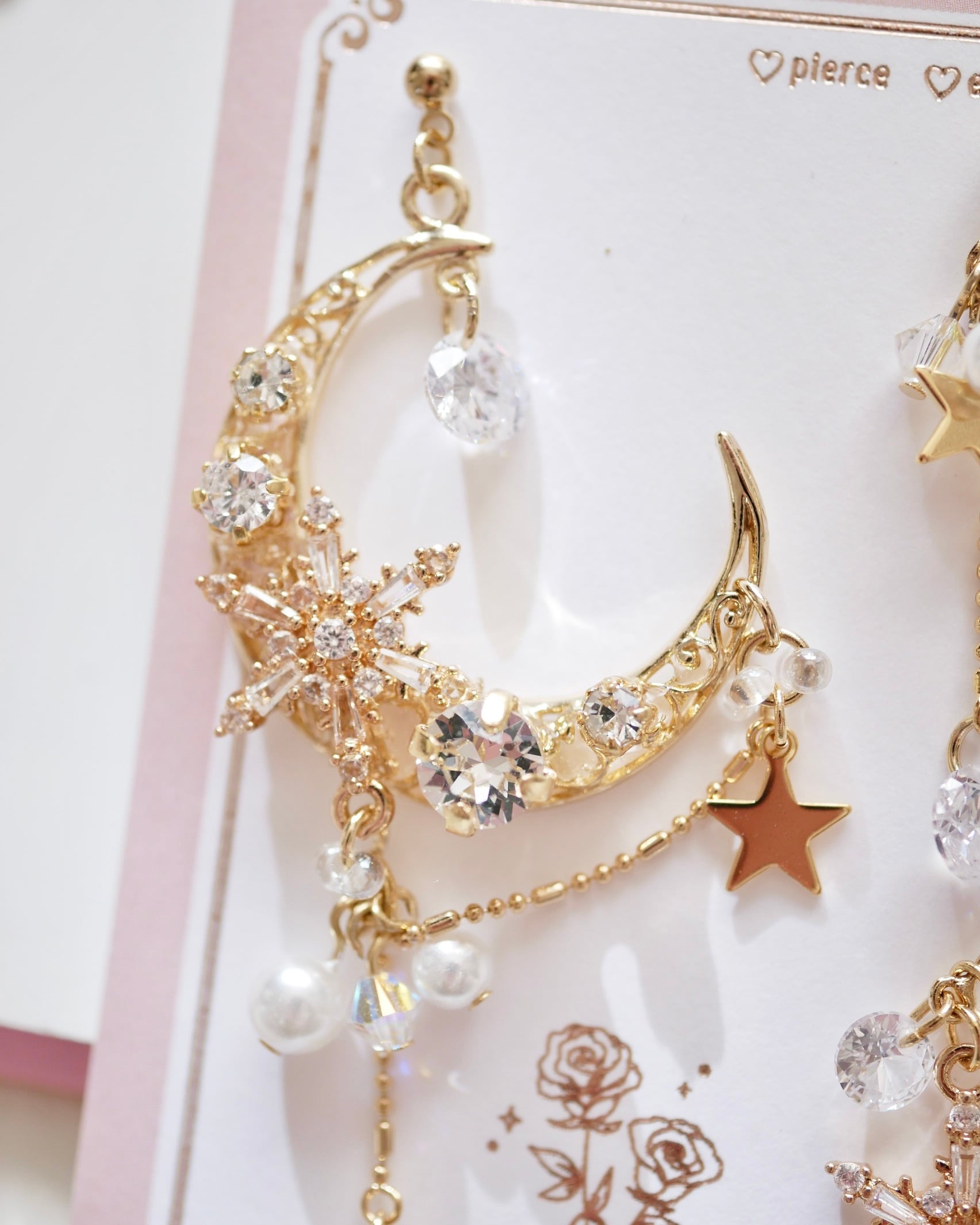 7122 ルナスノーフレーククリスタルアシメントリーピアス/イヤリング