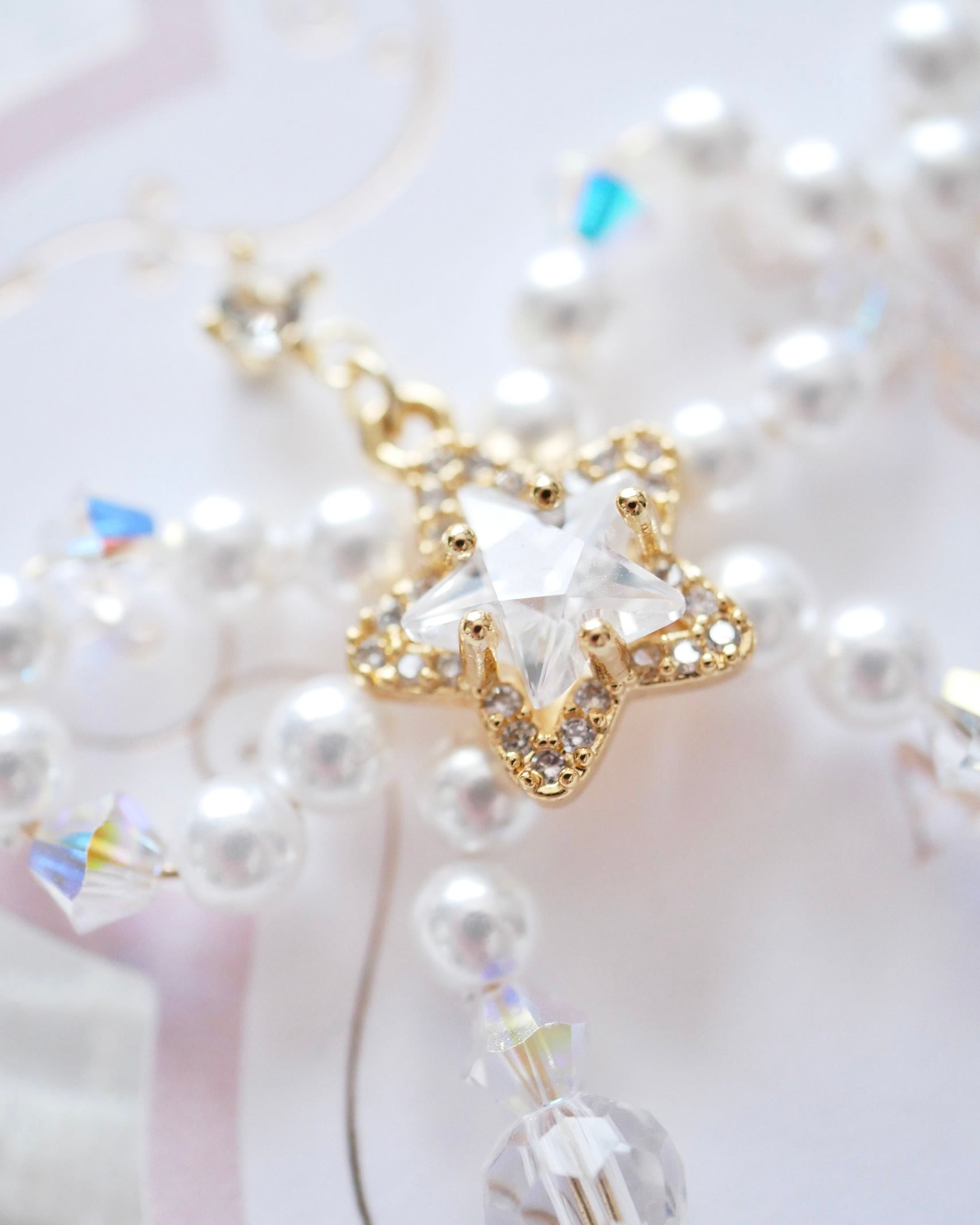オーロラに輝くクリスタルビーズをアクセントとして散りばめた、