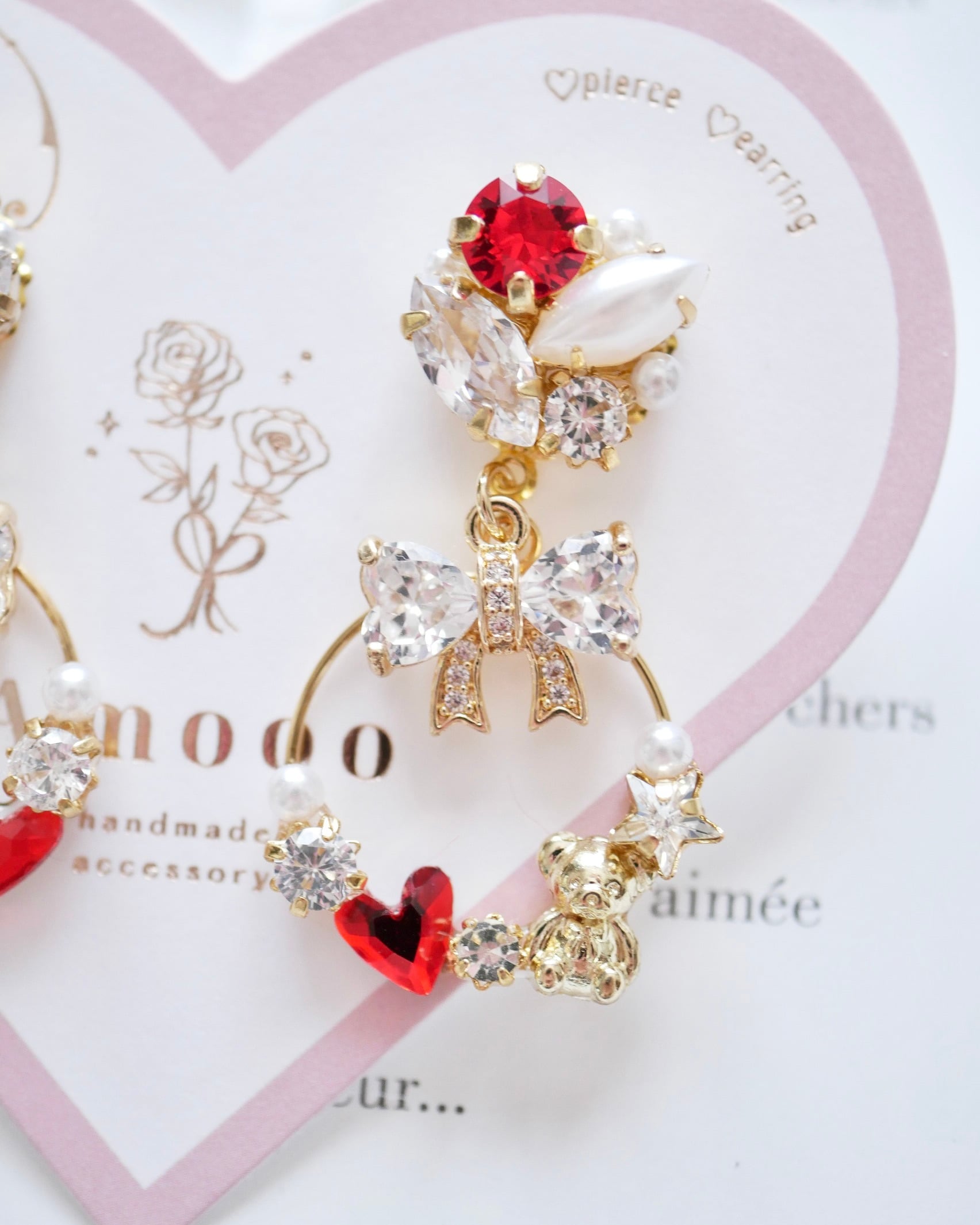【12月限定】7121 ホリデープチベアクリスタルリースビジューピアス/イヤリング