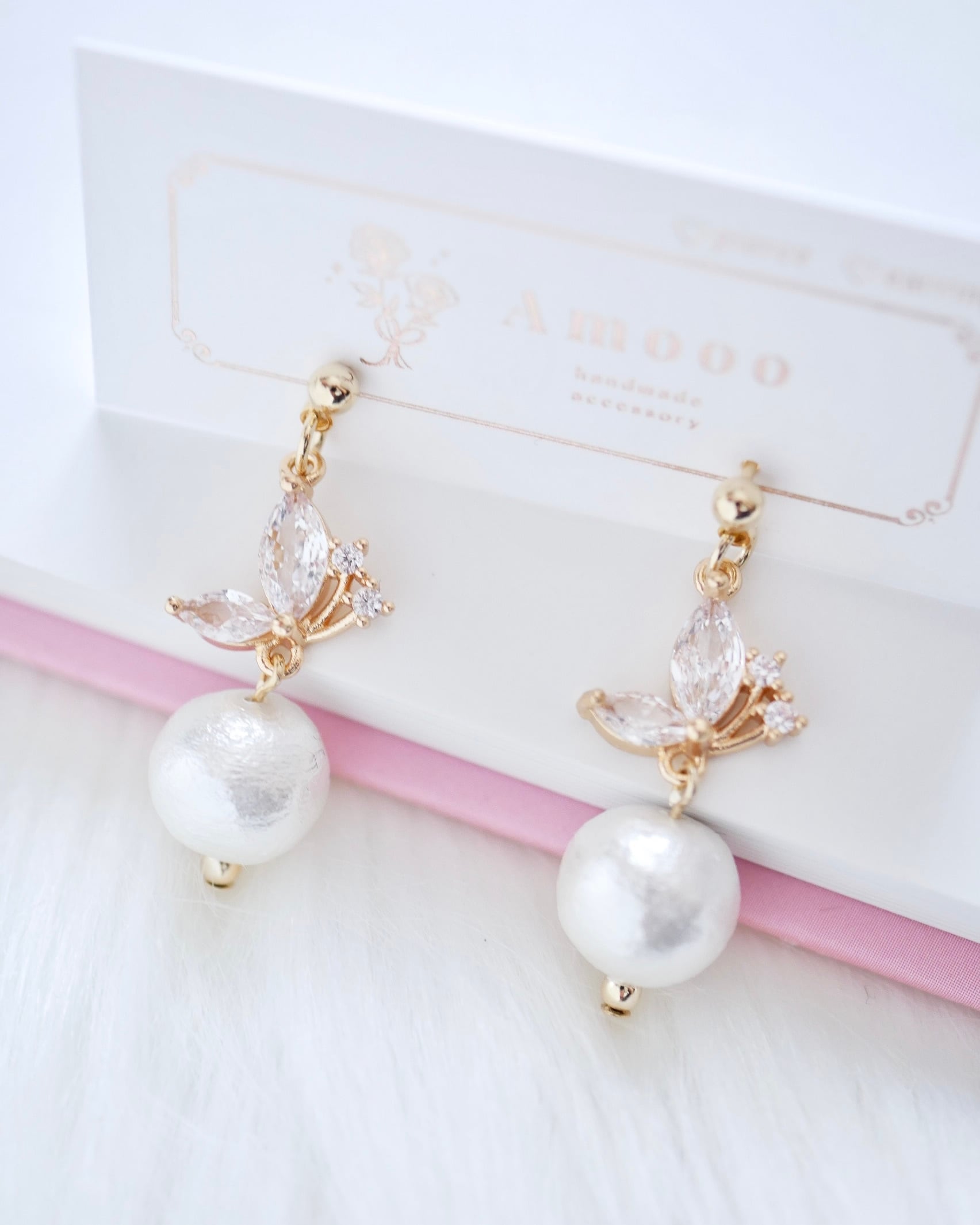 ジルコニアバタフライ×コットンパールピアス/イヤリング
