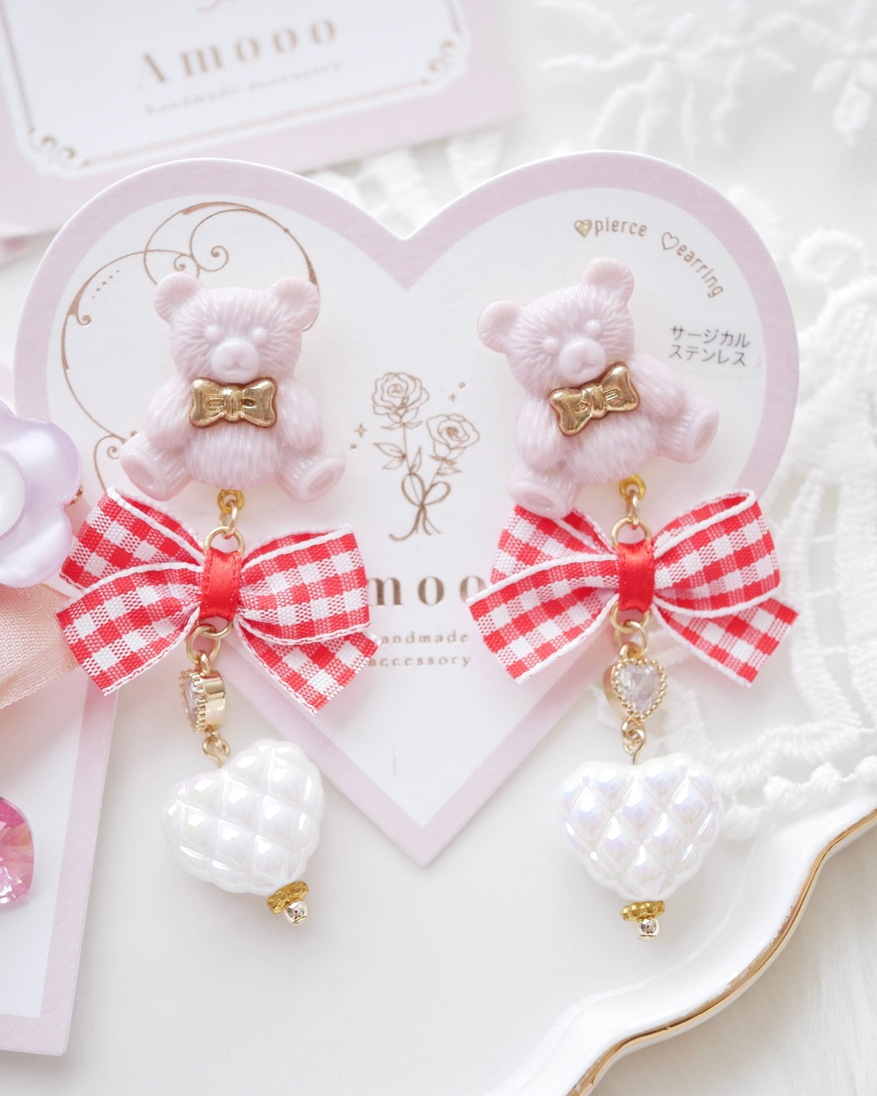 アクセサリー金属メッキの変色や台紙の痛み等がございます。