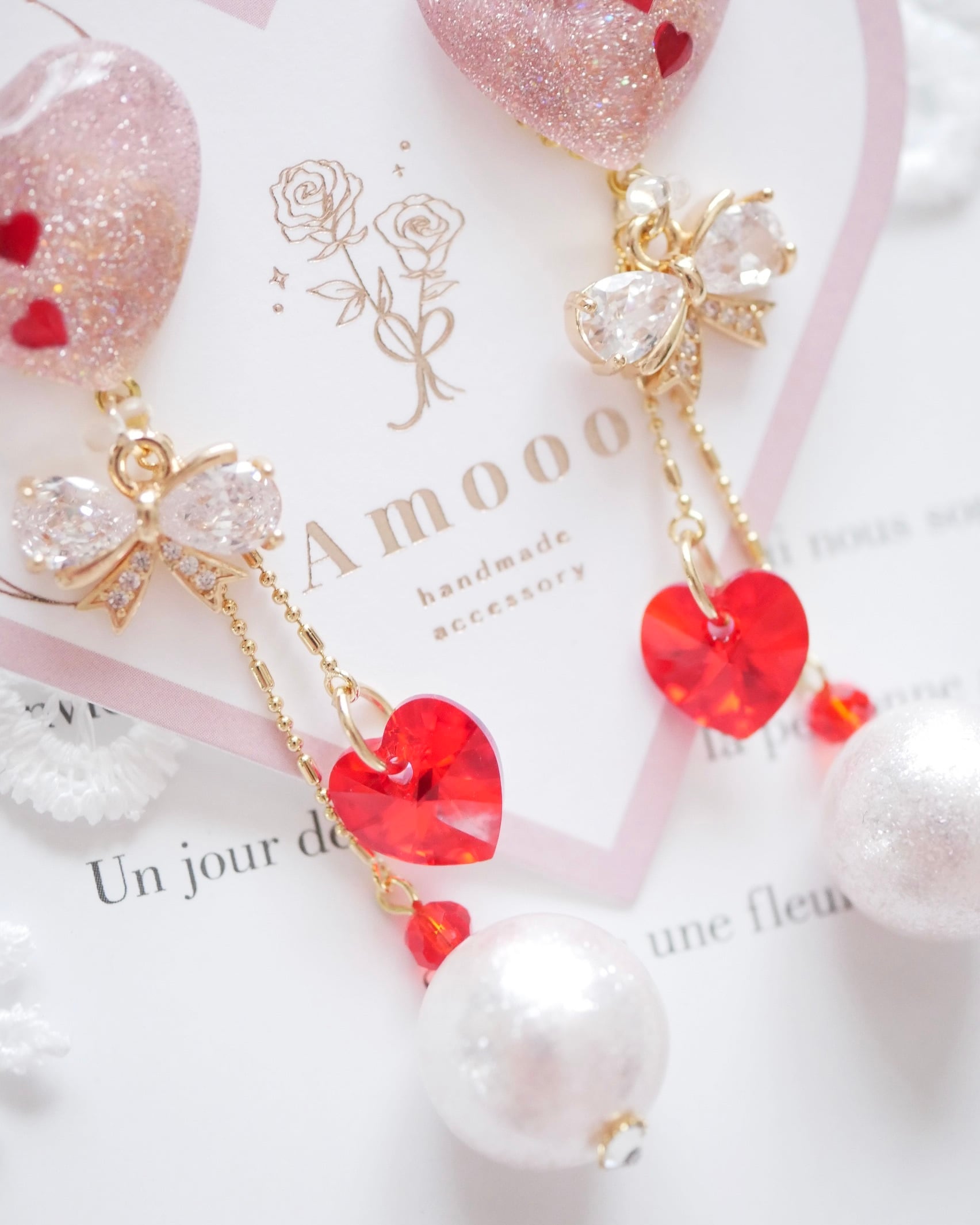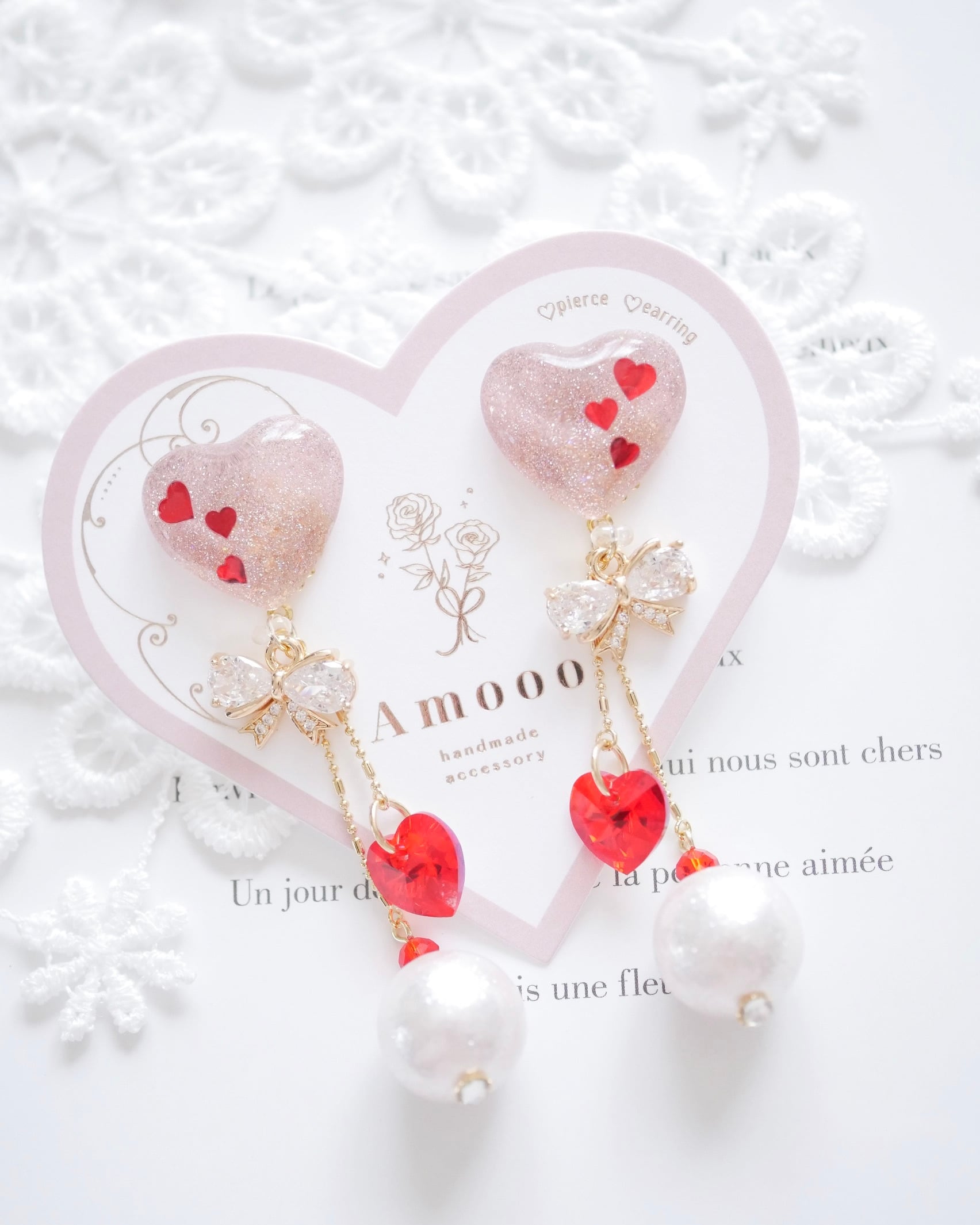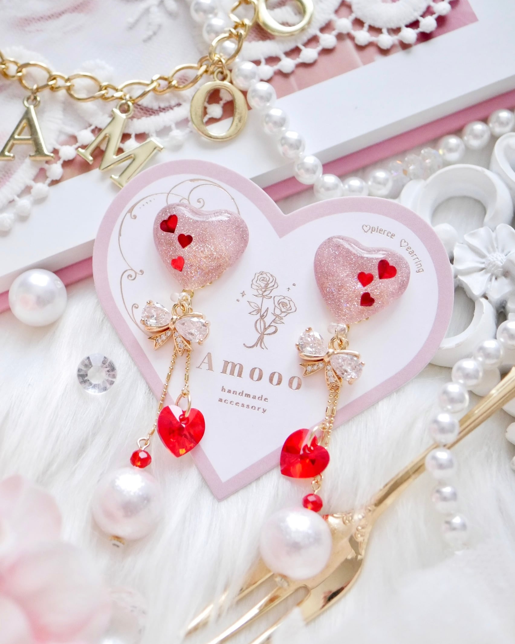 8106 フラッシュラメハートガーリーピアス/イヤリング