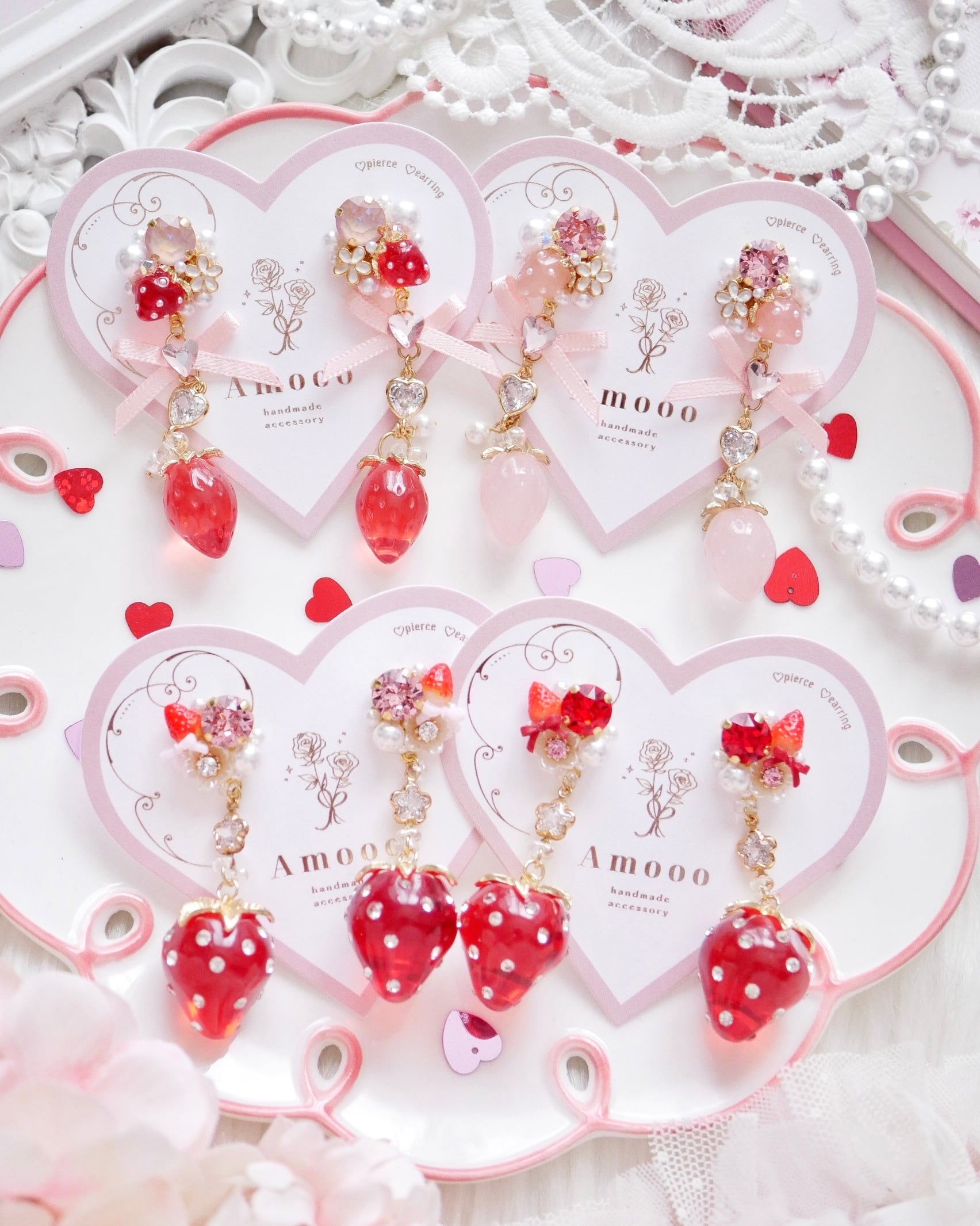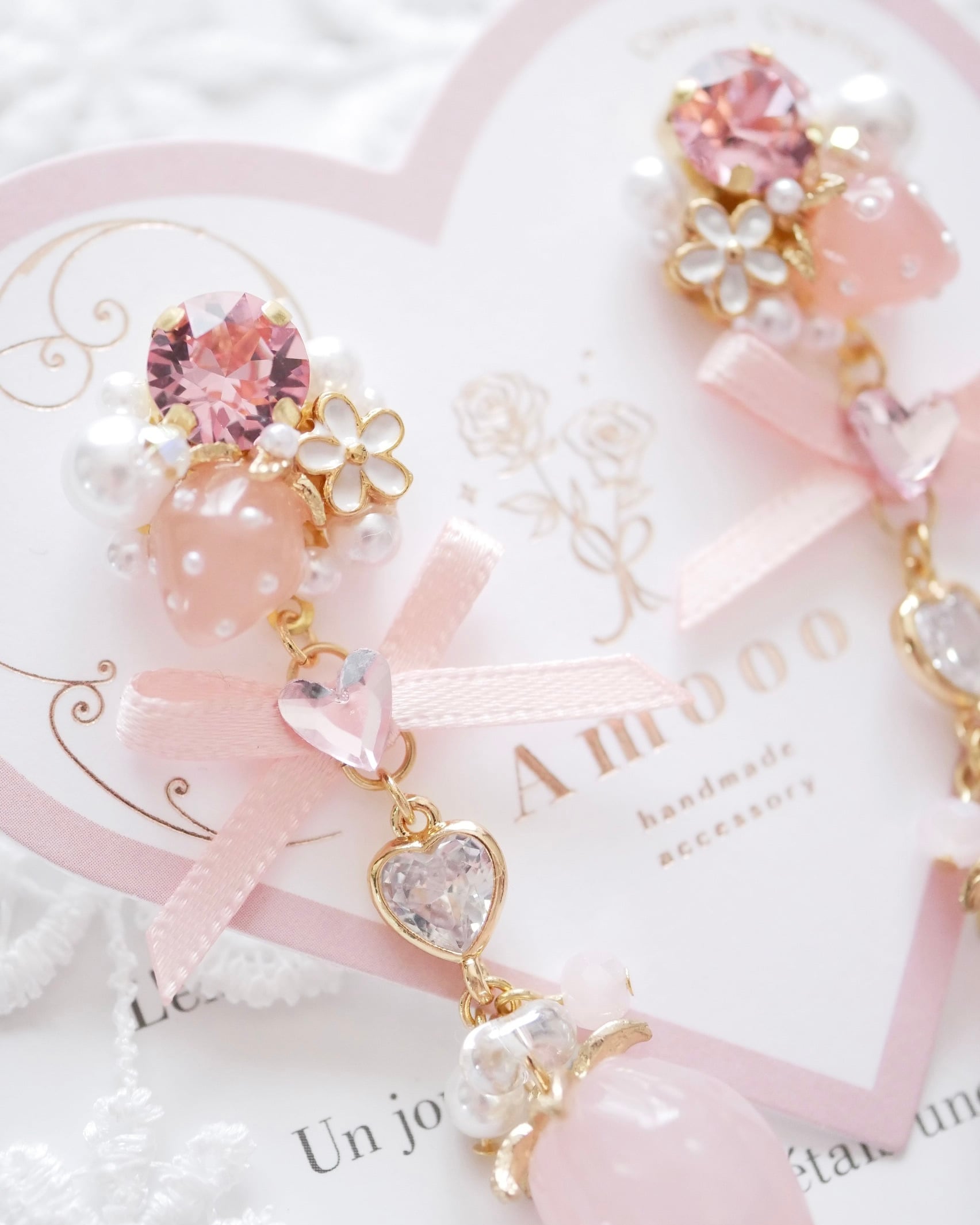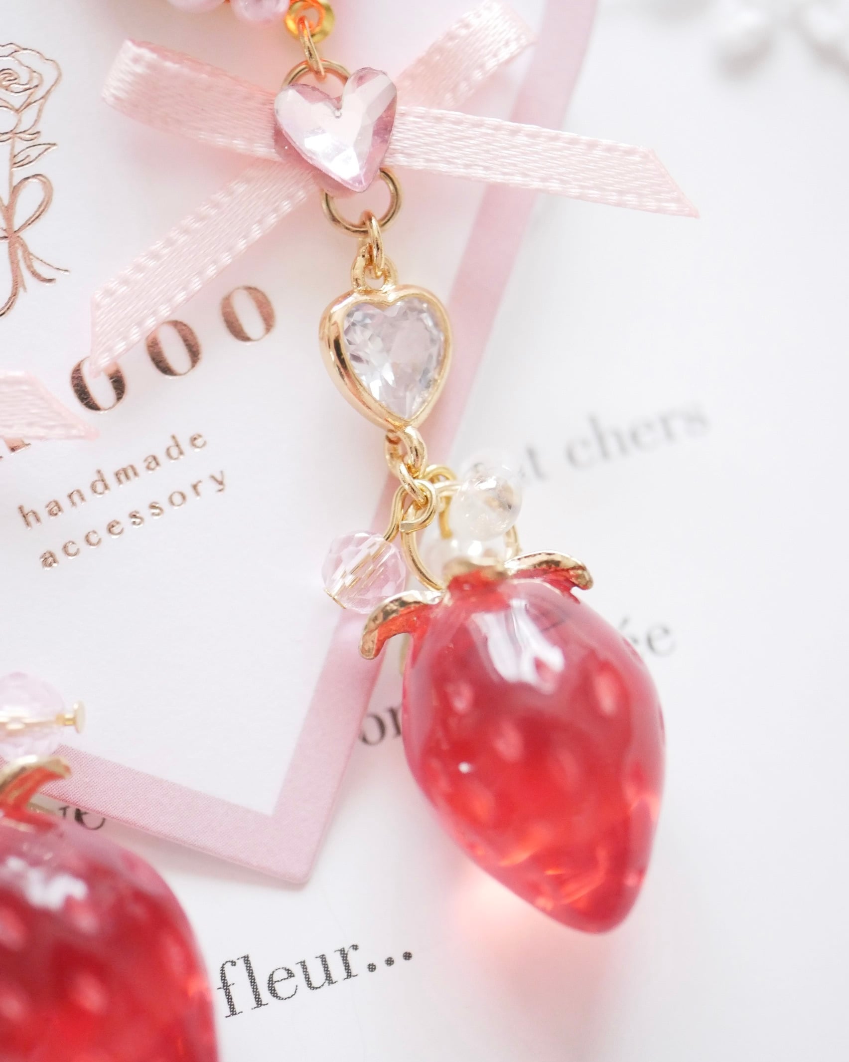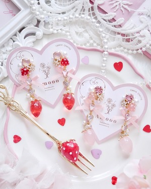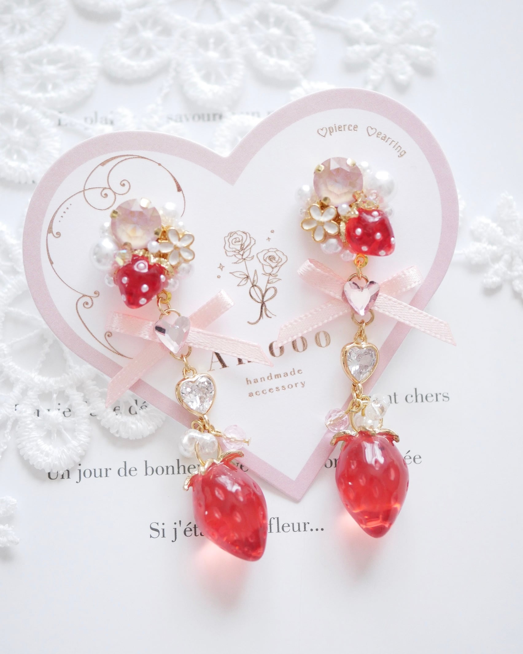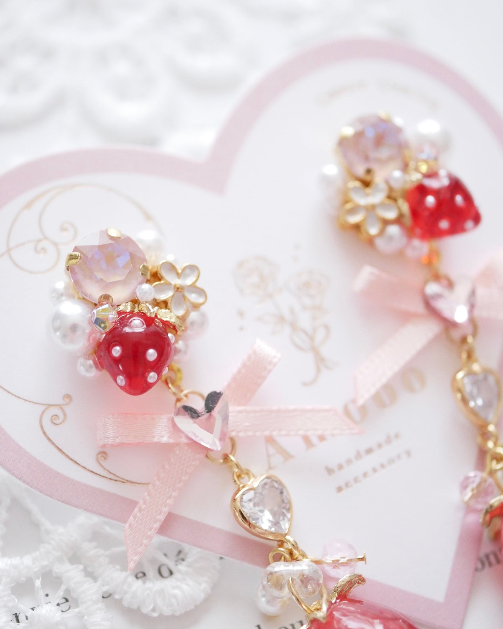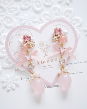 8109 スプリングストロベリーフラワービジューピアス/イヤリング
