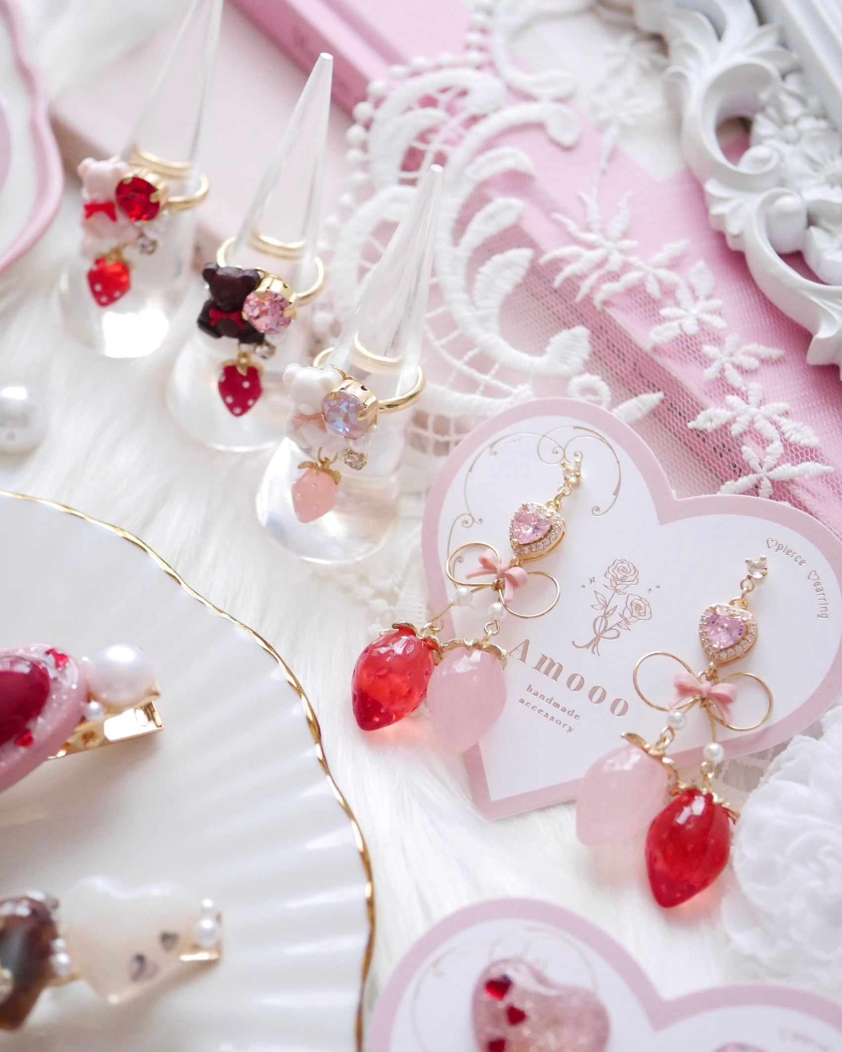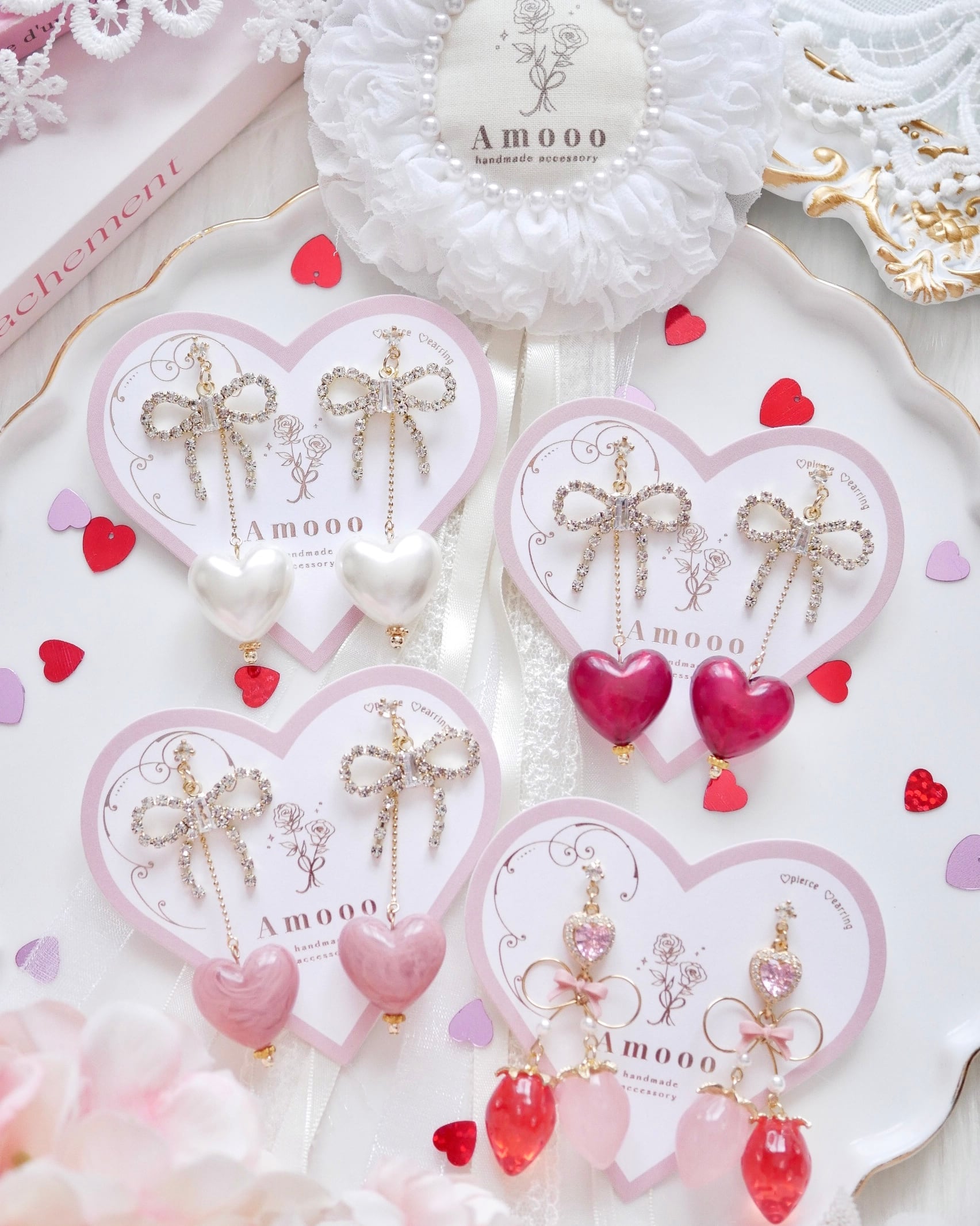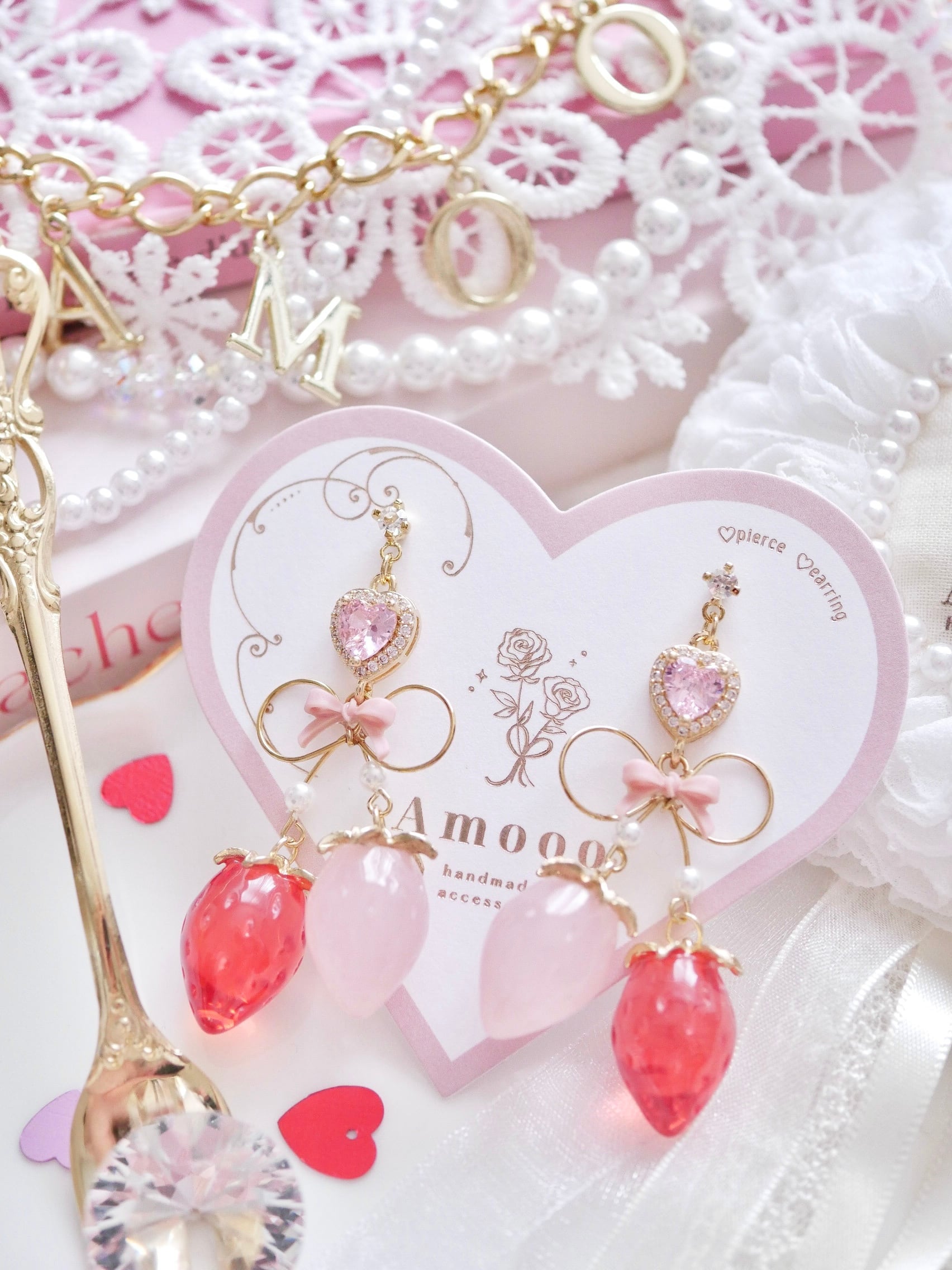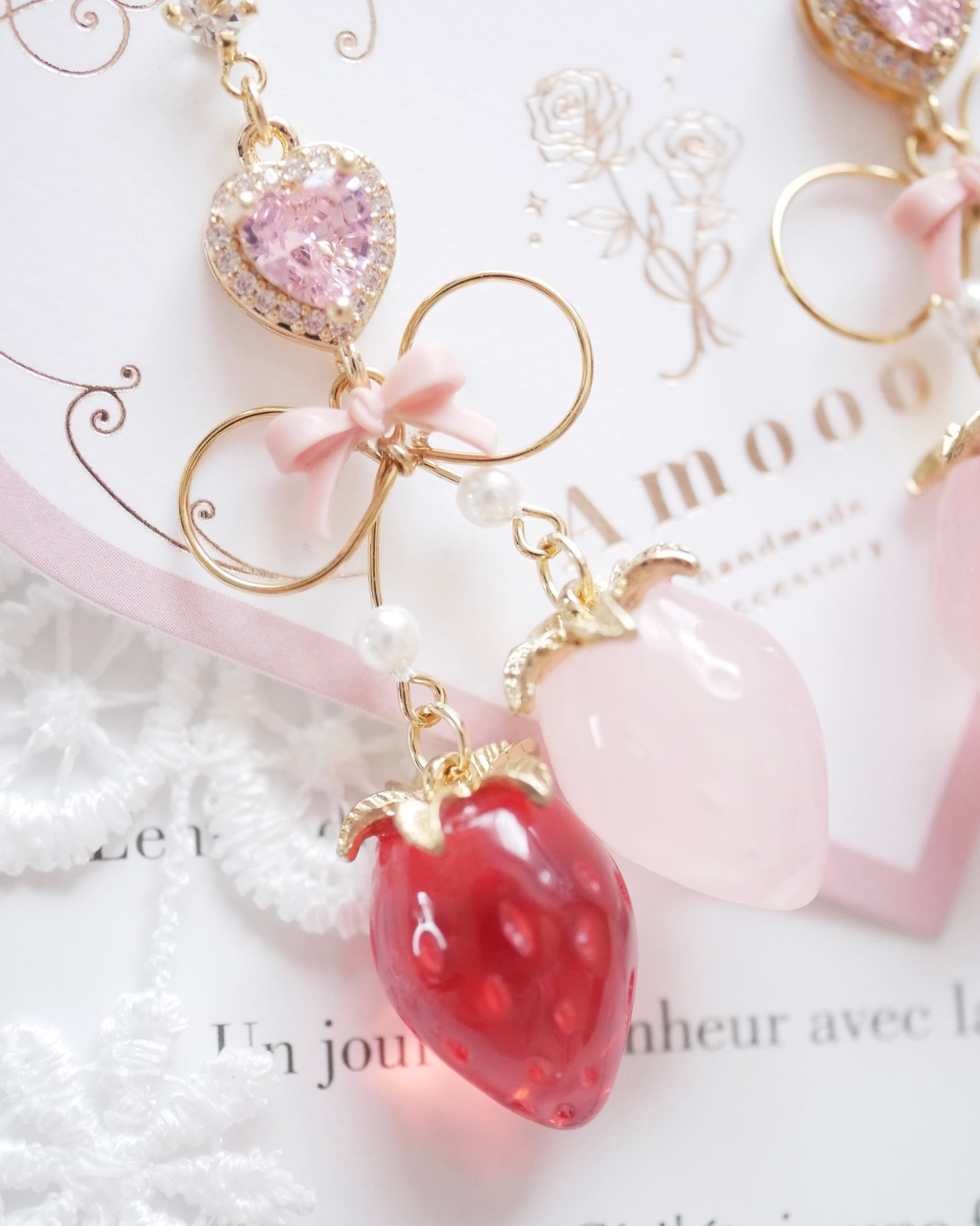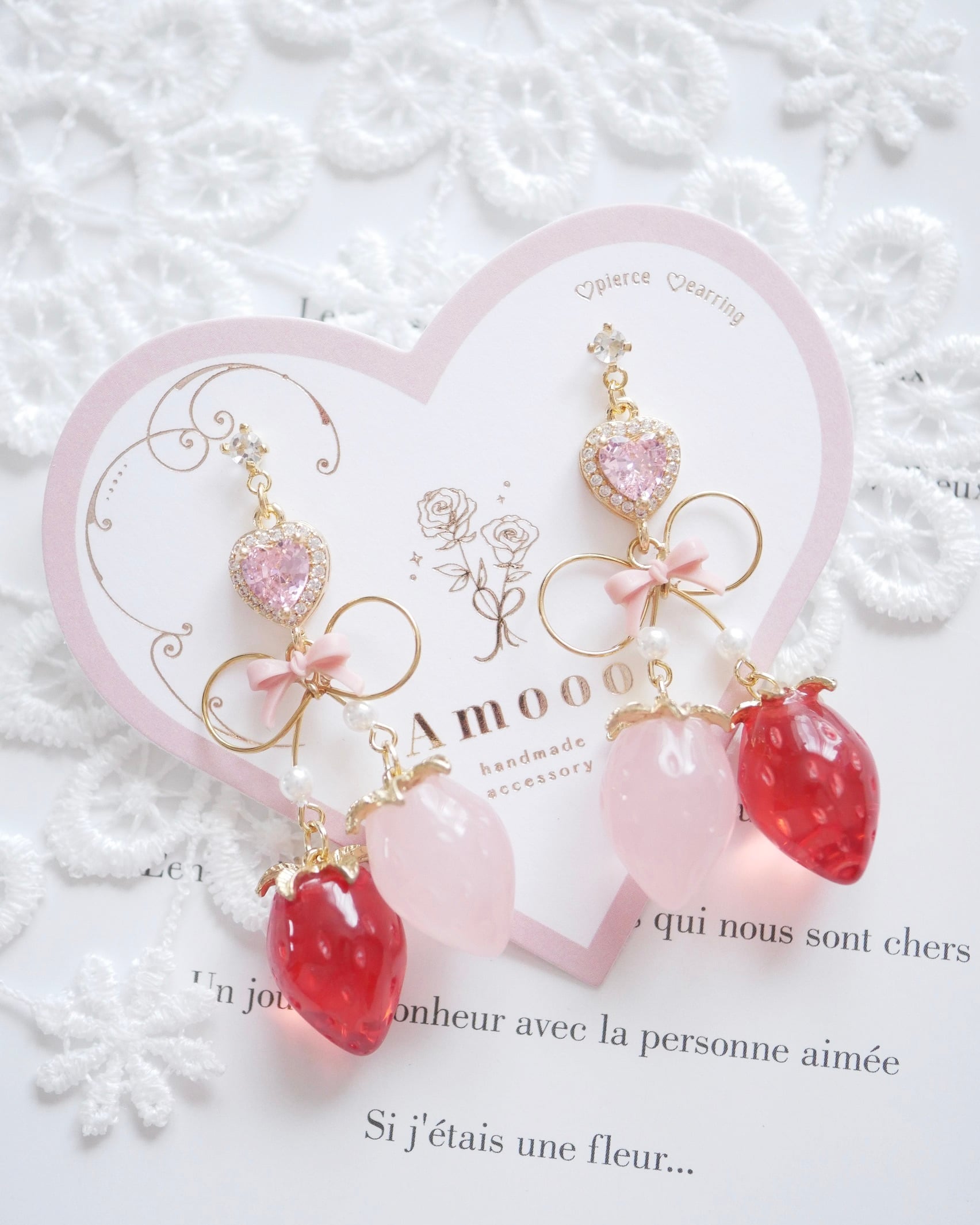 8112 ダブルストロベリーリボンチャームピアス/イヤリング
