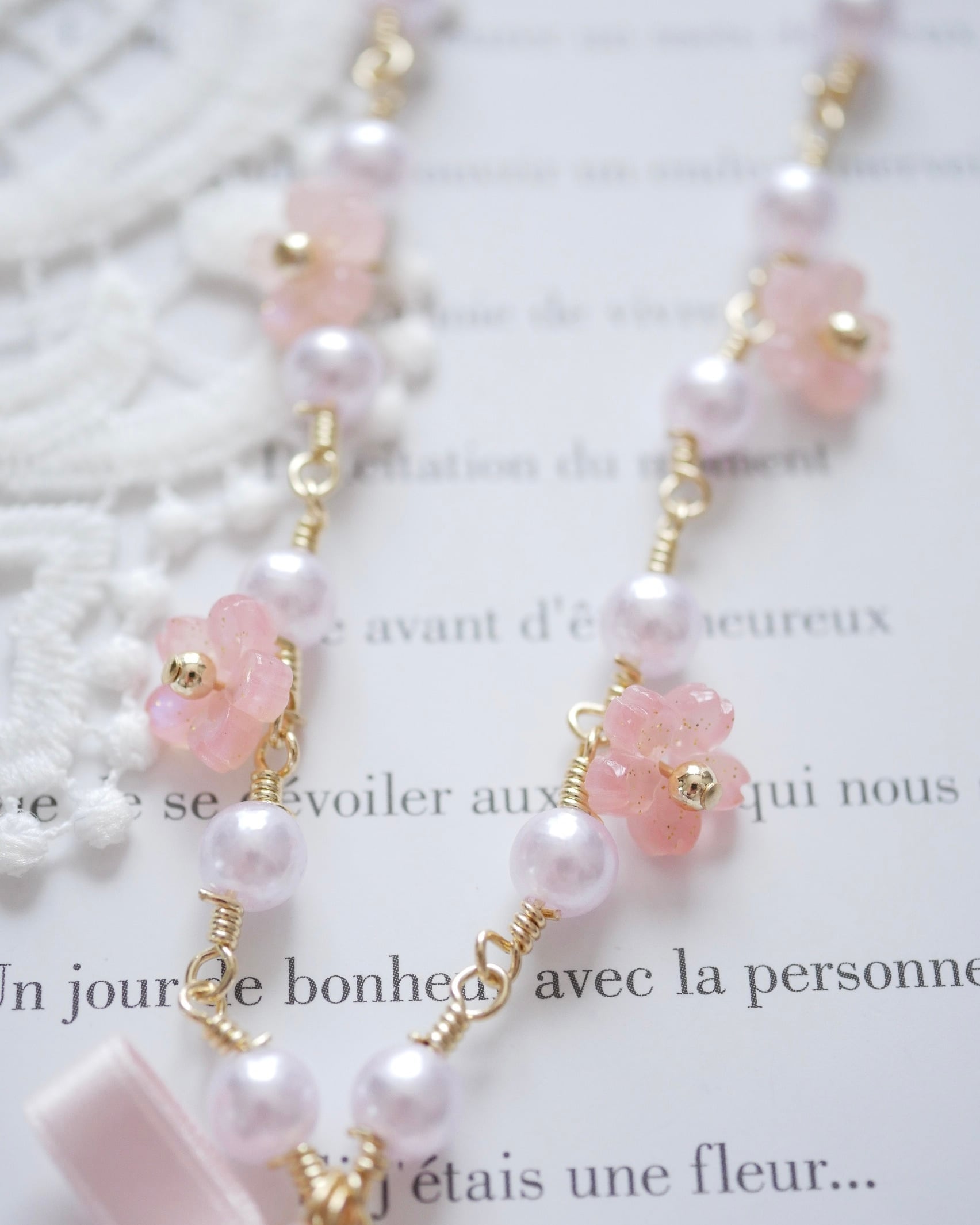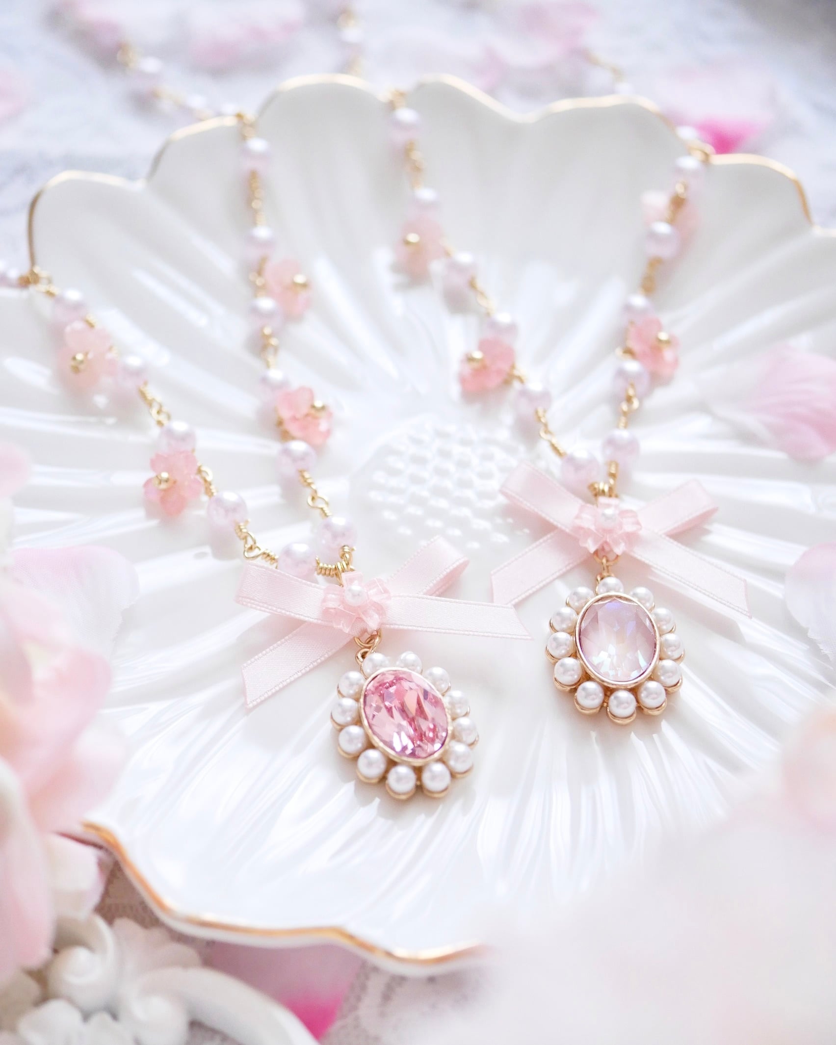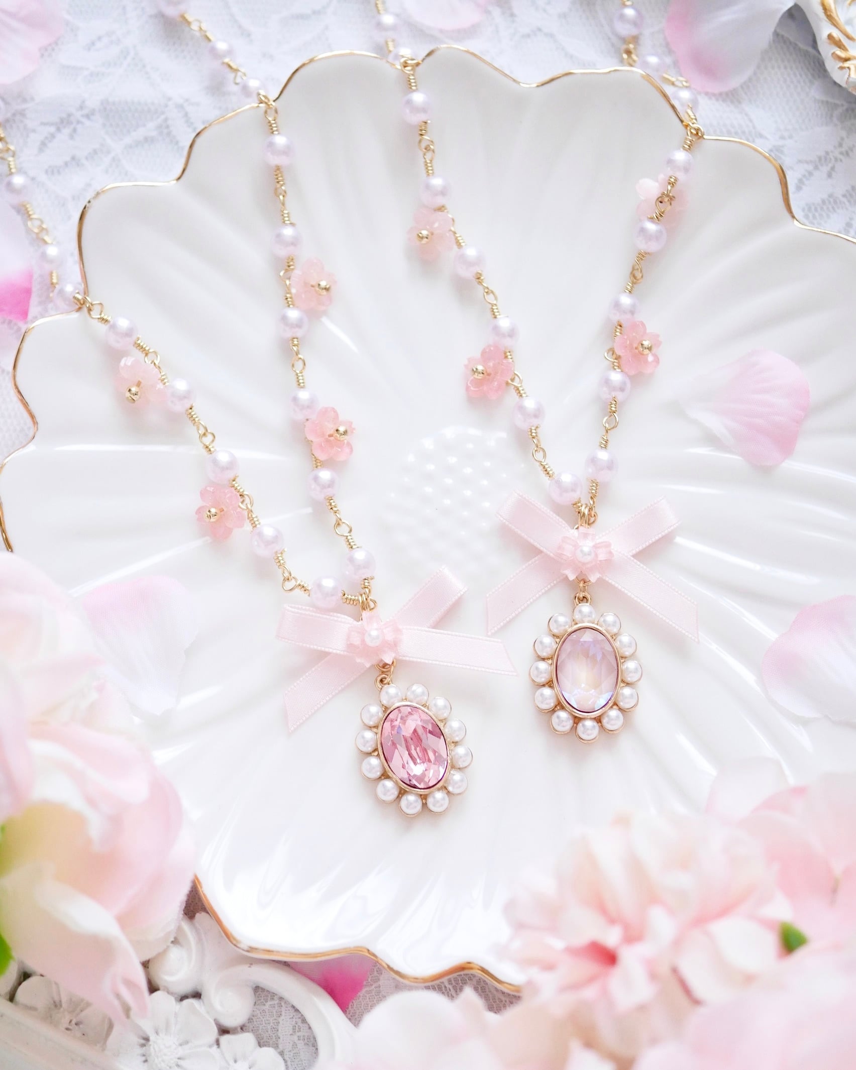 パールチェーンのパールも淡いピンク色パールになっています⋆*