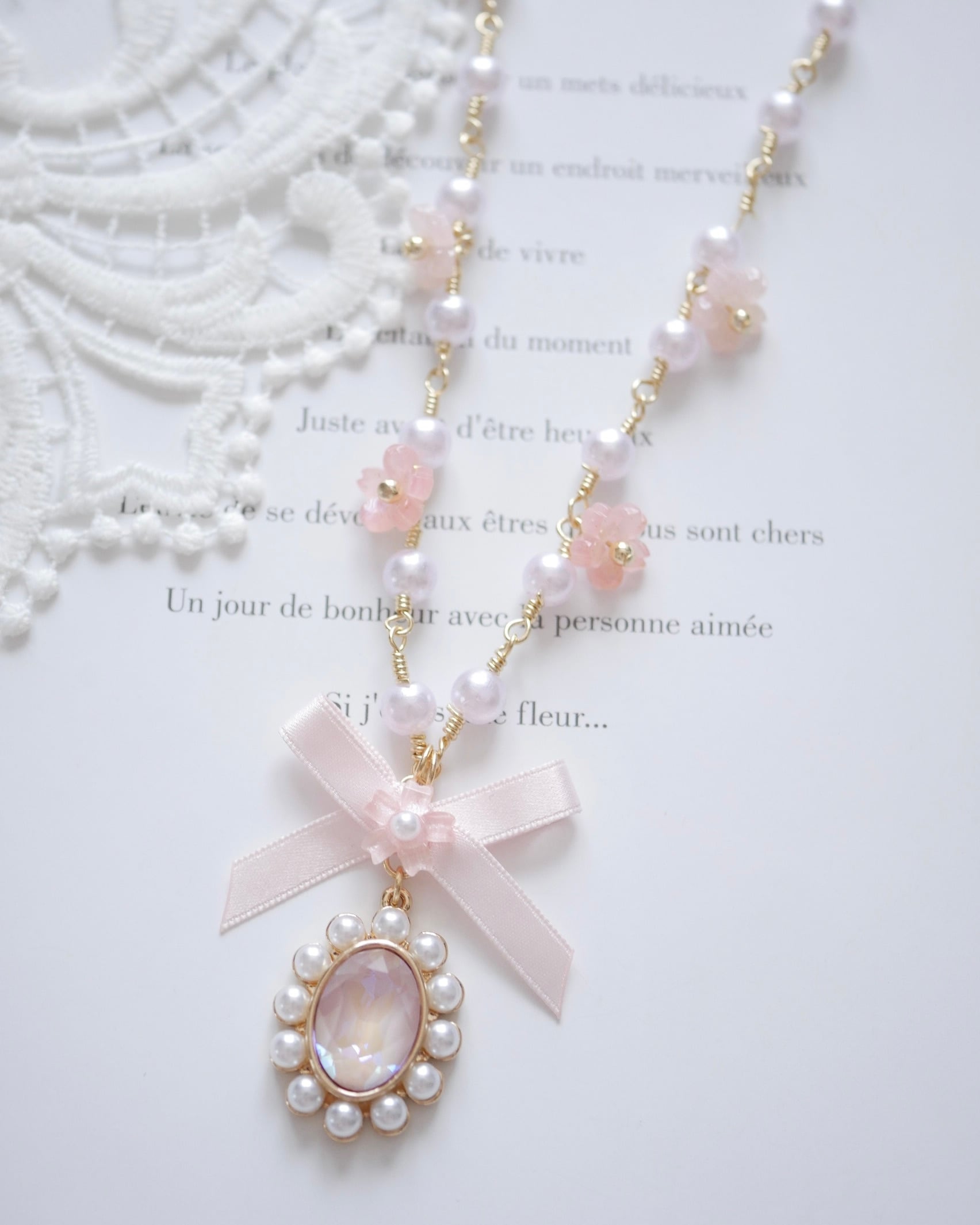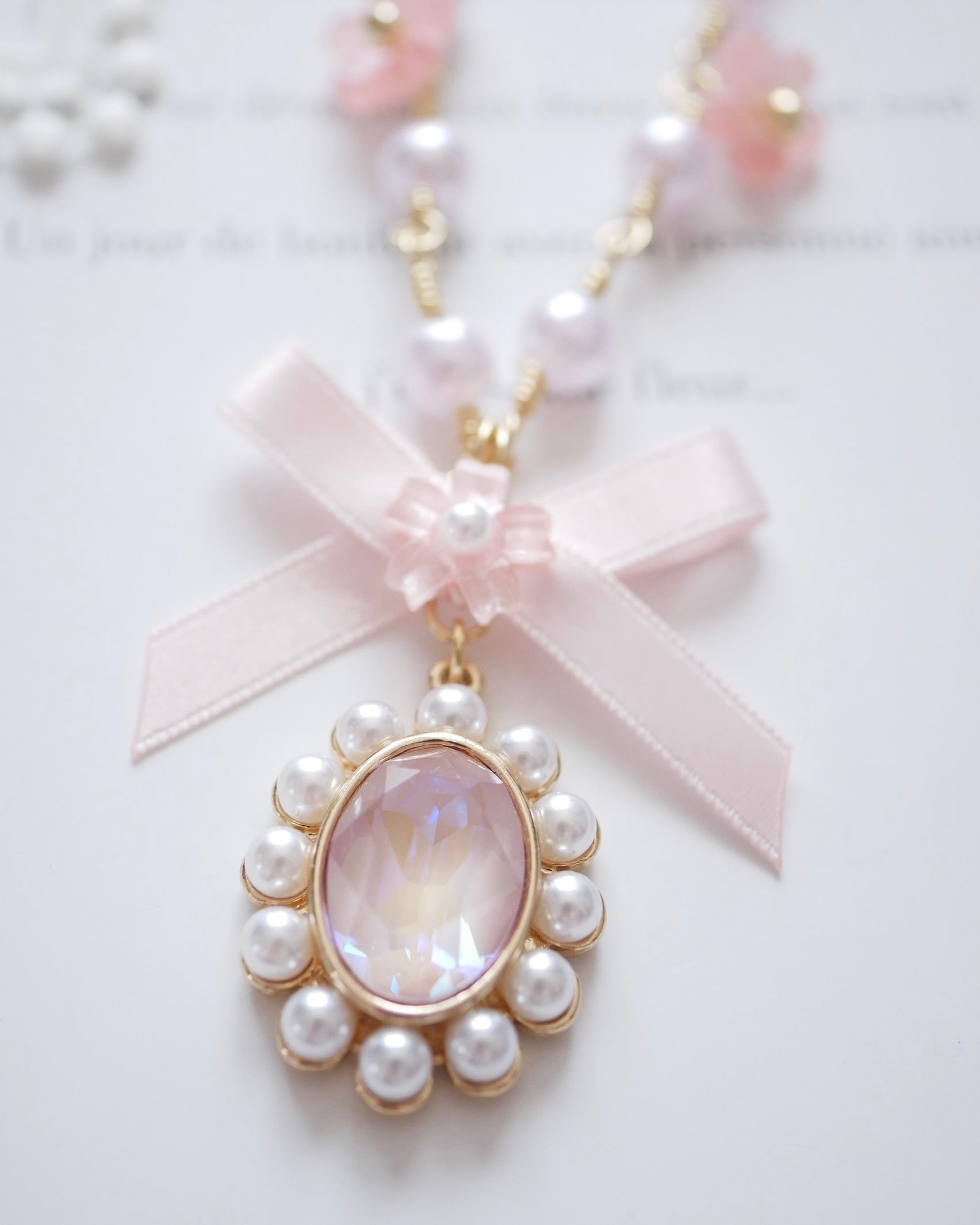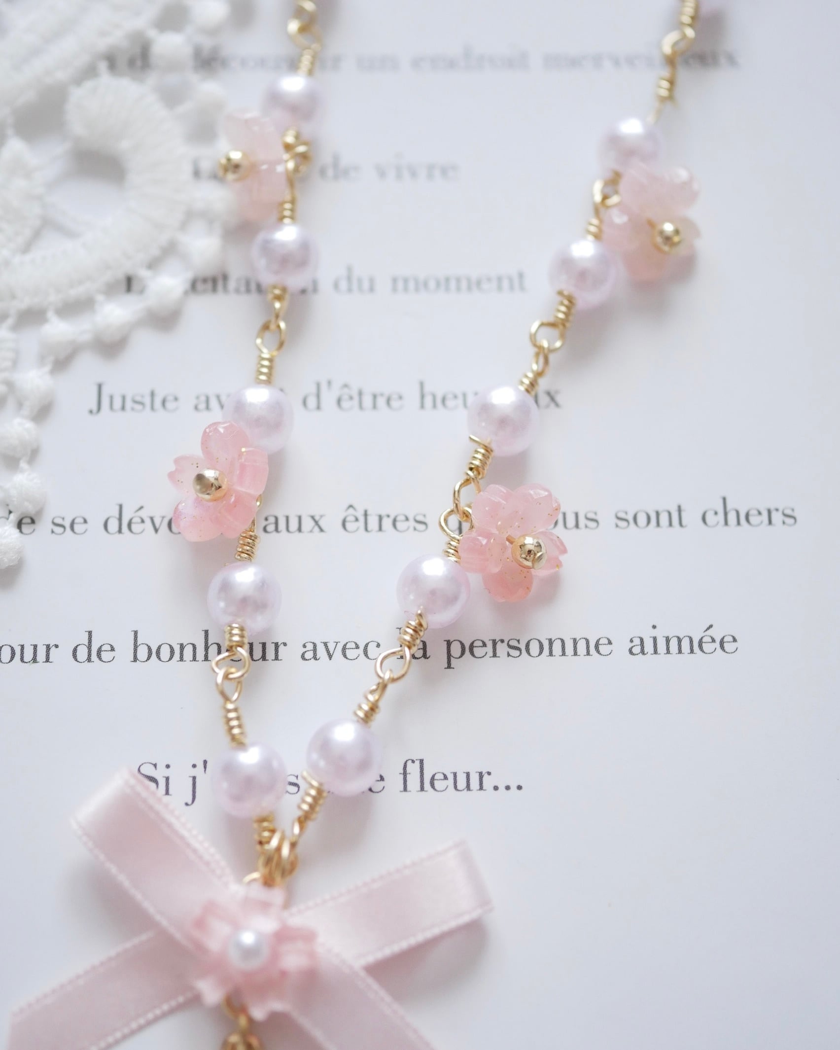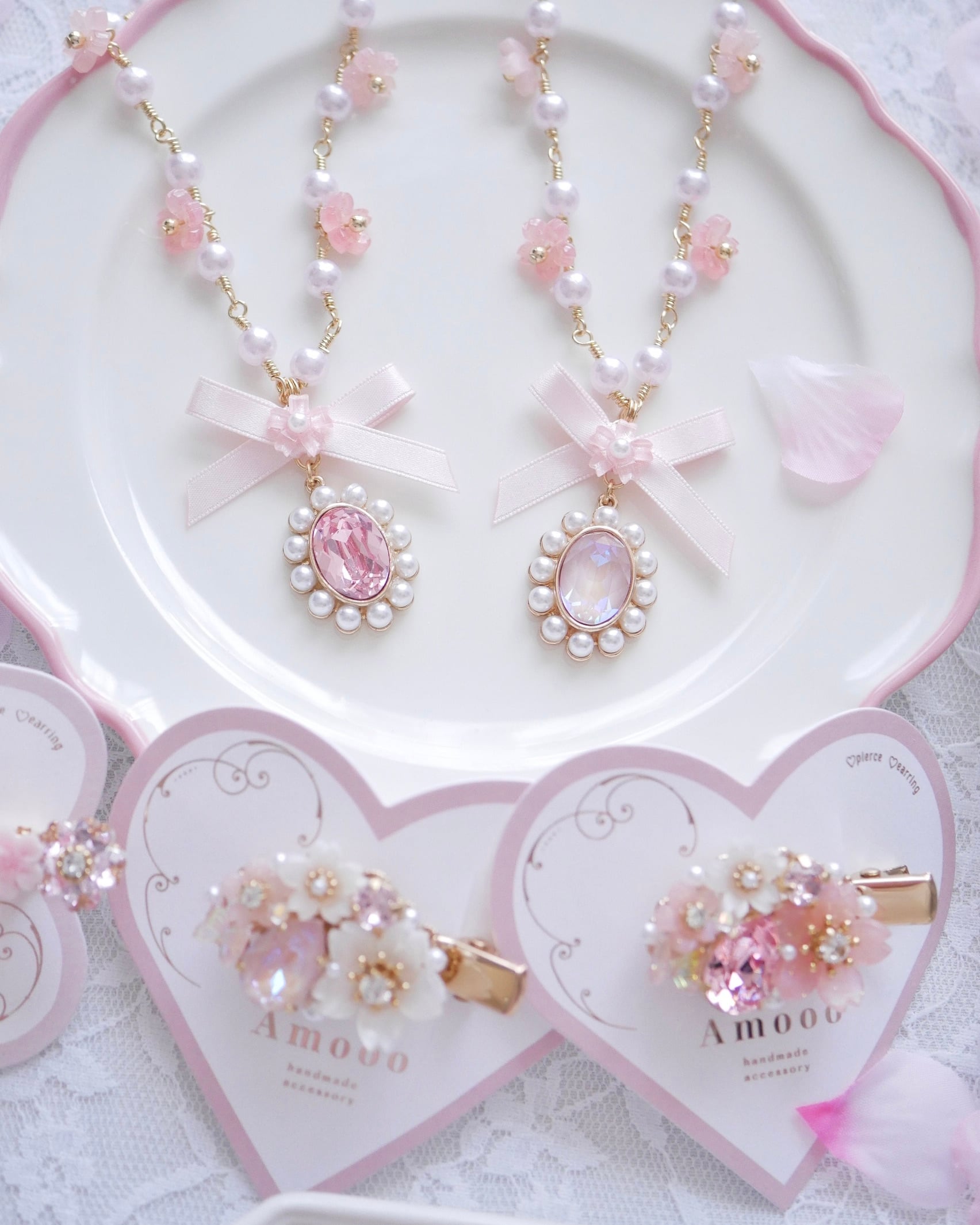パールチェーンのパールも淡いピンク色パールになっています⋆*
