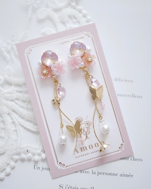 8208 さくらビジューバタフライウェーブピアス/イヤリング