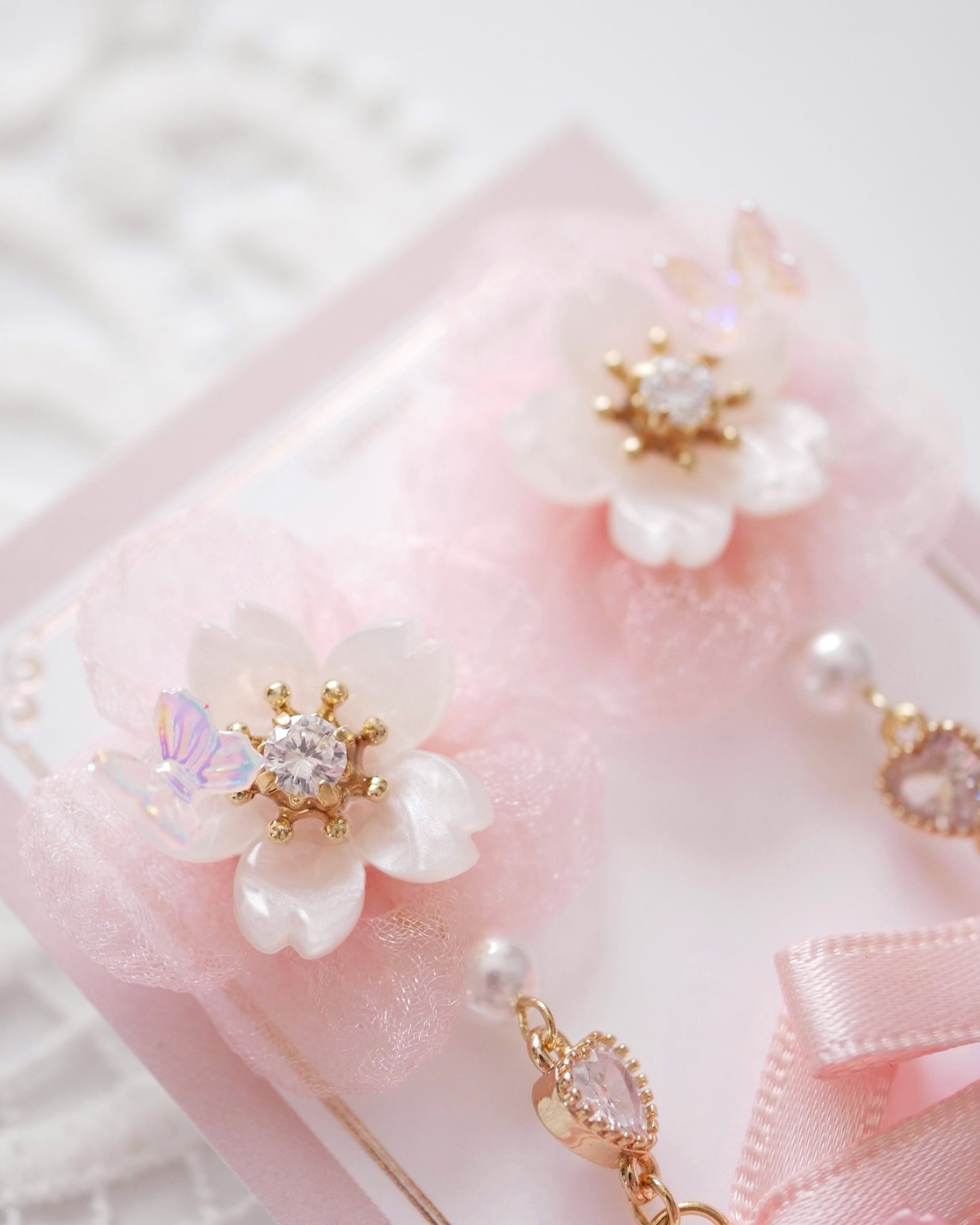 桜とビジューを重ね、