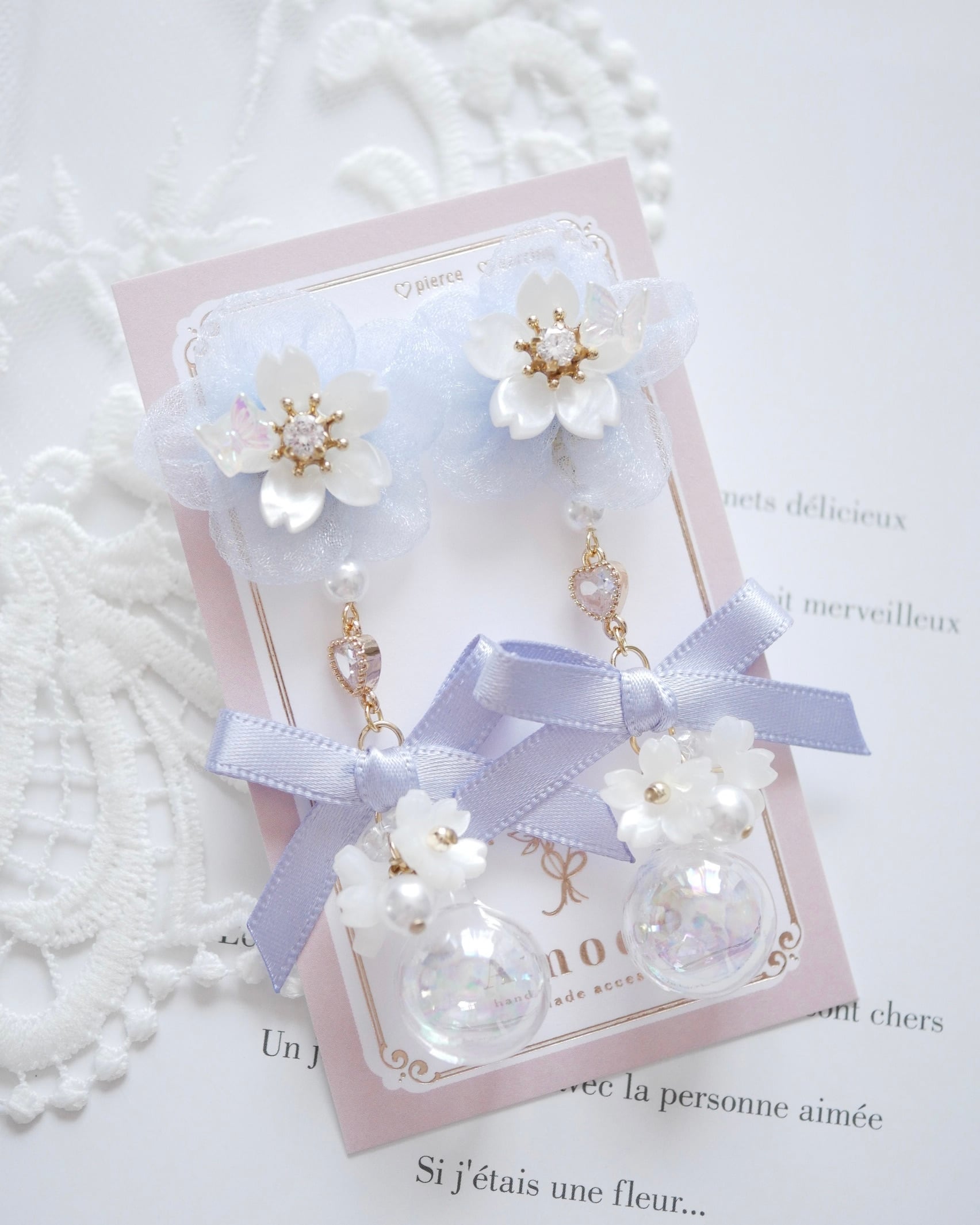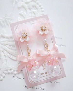 8211 さくらチュールフラワーガラスドームピアス/イヤリング