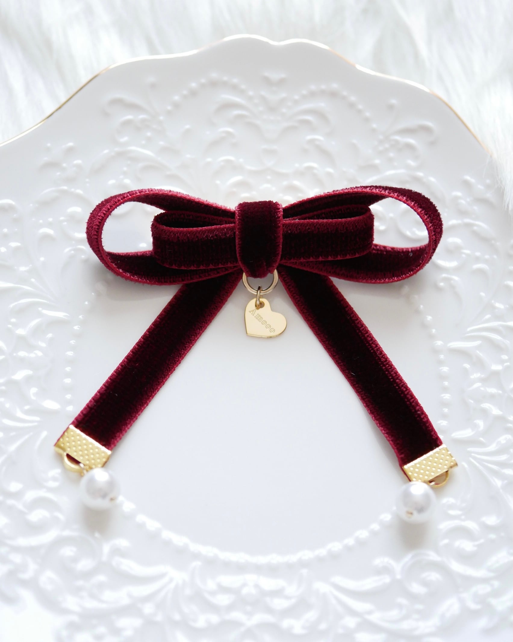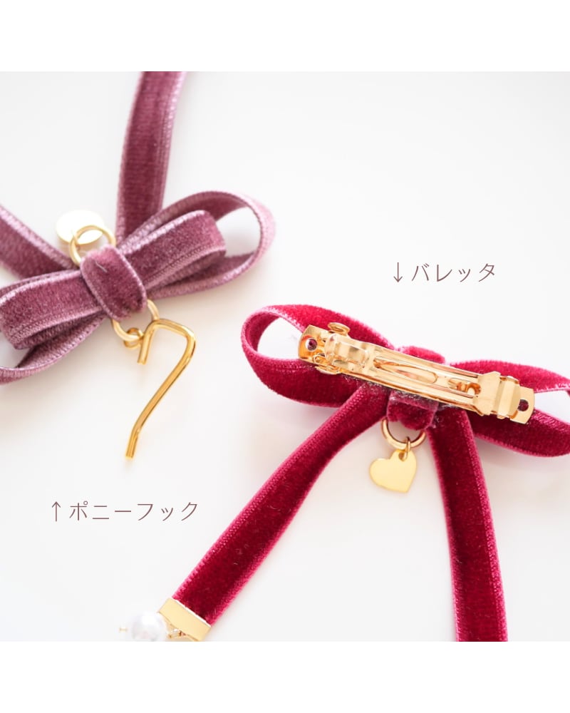 396 ベルベットスウィートリボンヘアゴム/バレッタ/ヘアクリップ