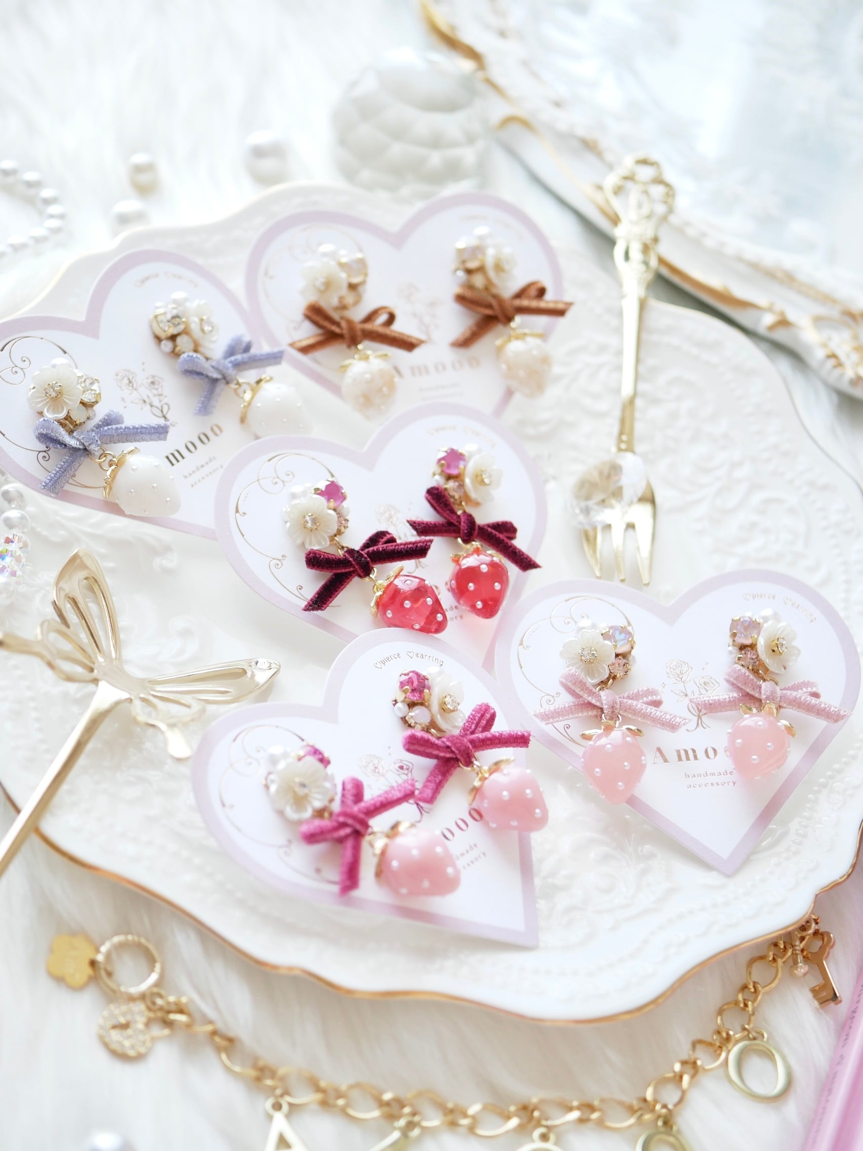 お好きな ビジューカラー × リボン × いちごカラー をお選び頂けます♡