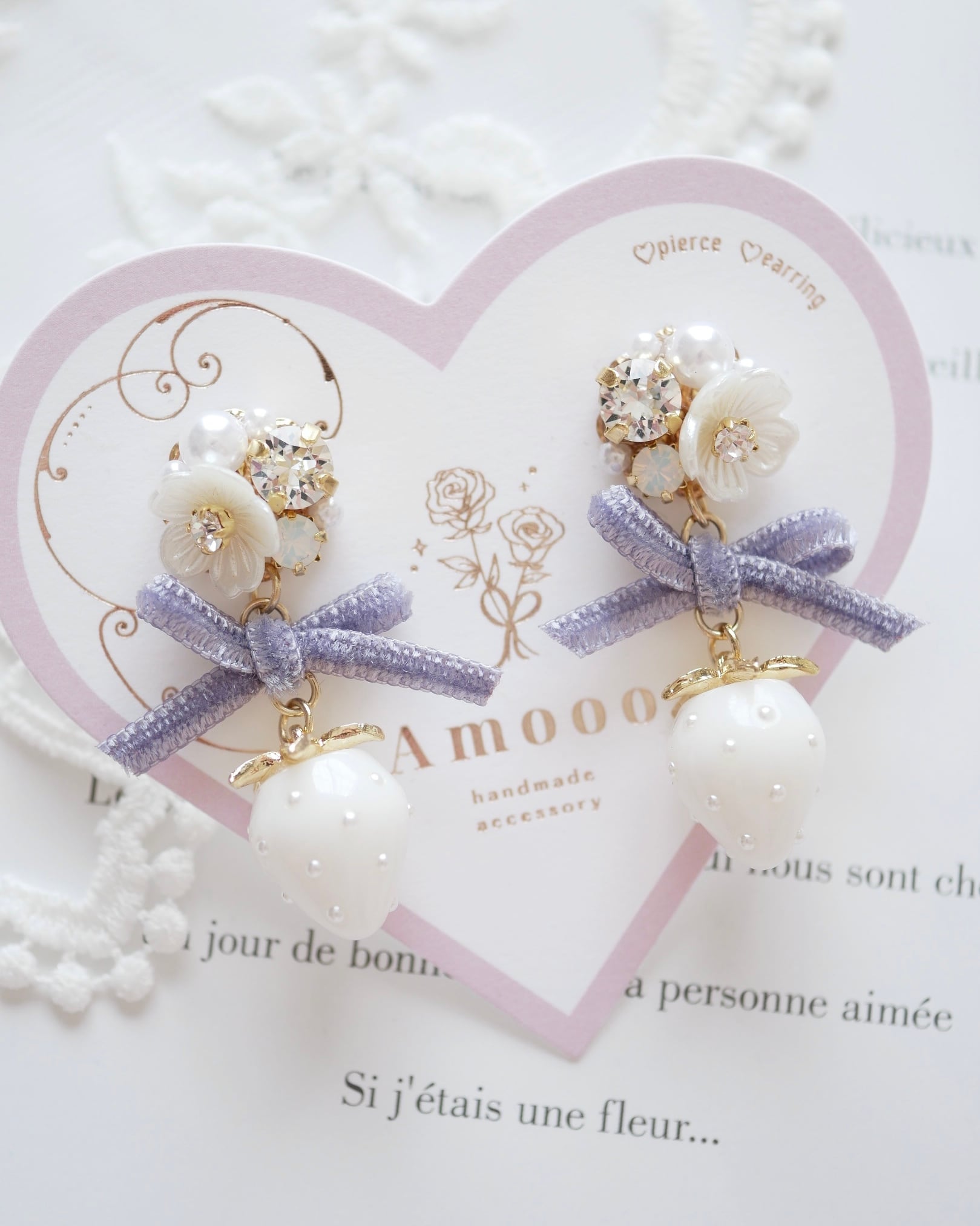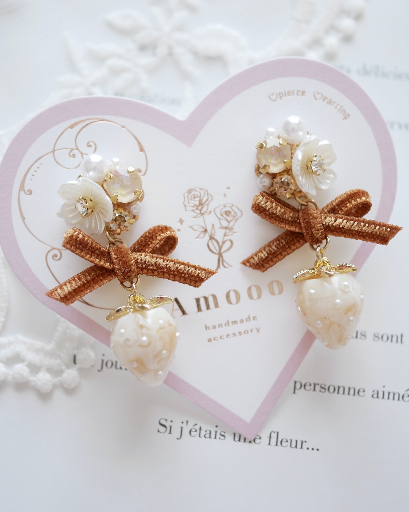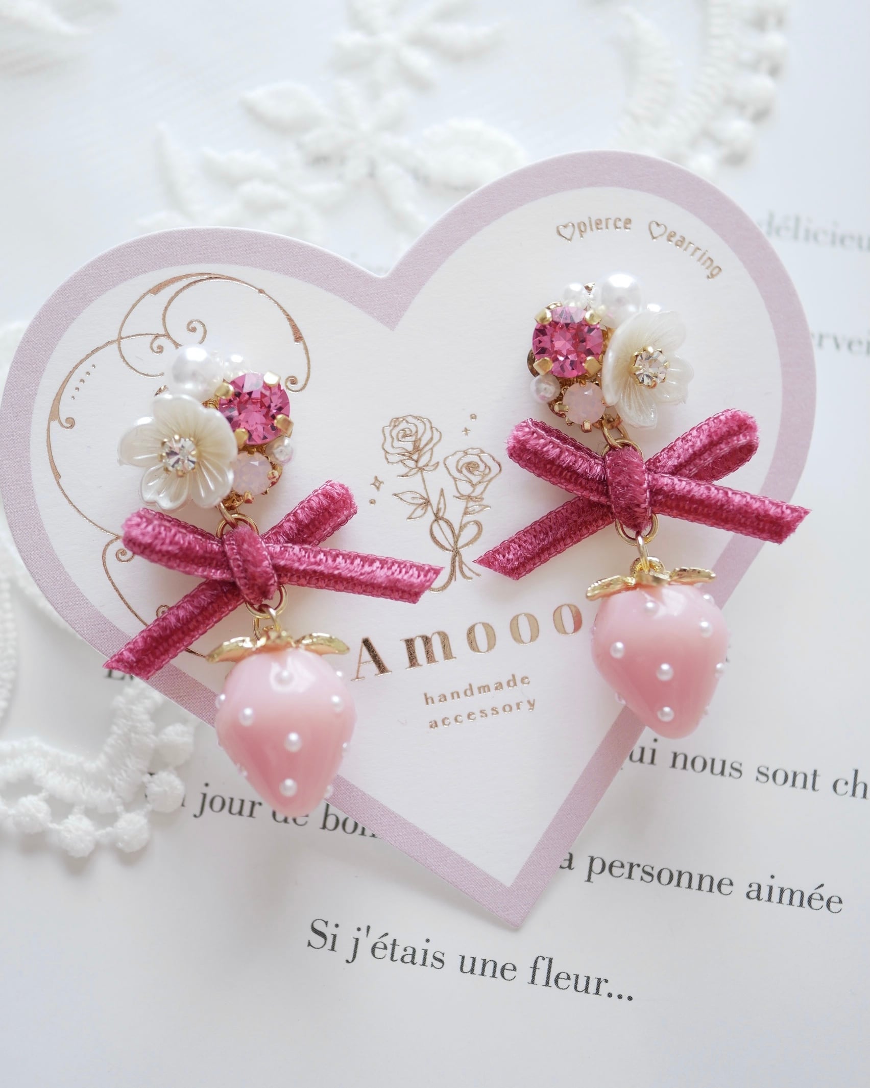 595 ミニベルベットリボンいちごビジューピアス/イヤリング