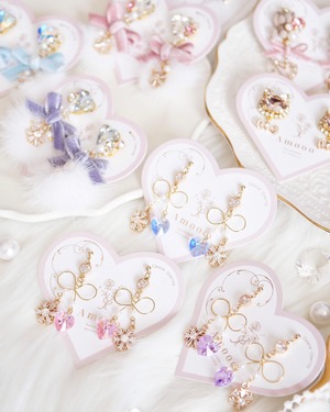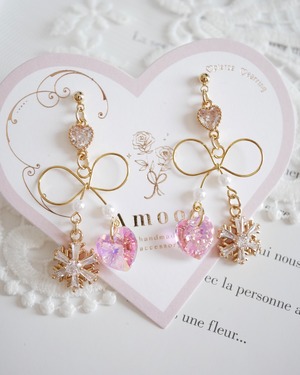 658 カラーハート×スノーフレークリボンチェリーピアス/イヤリング