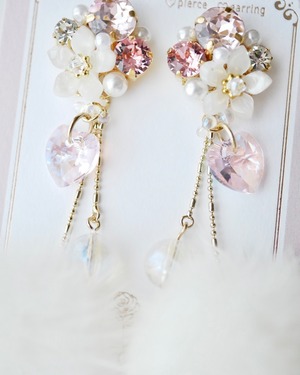 984 クリスタルフラワービジューロングファーピアス/イヤリング