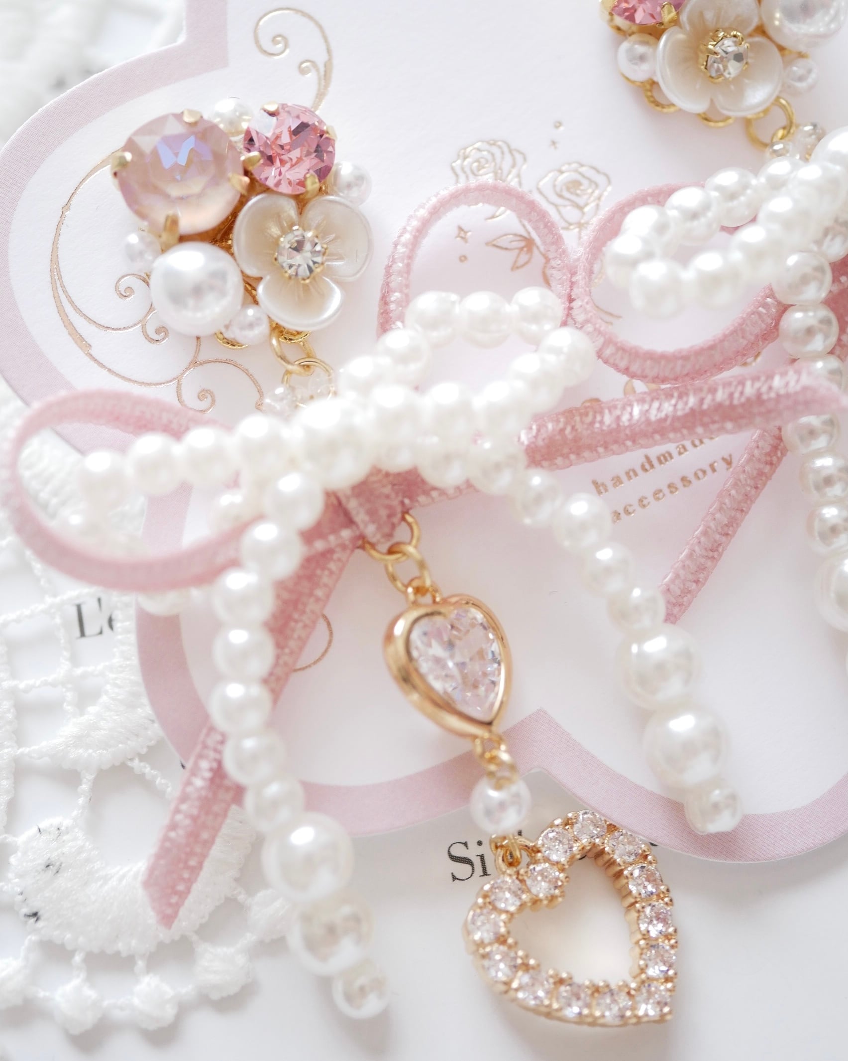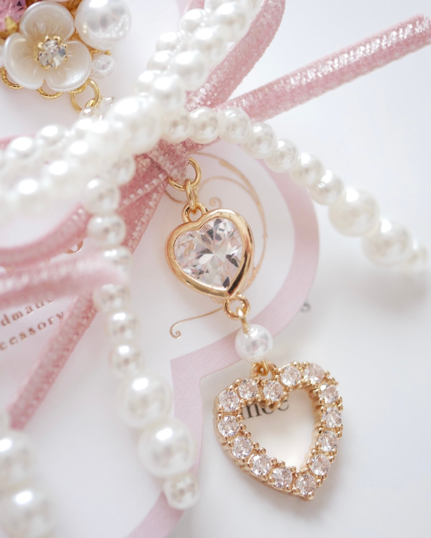 クリスタルビジューモチーフとダブルリボンが