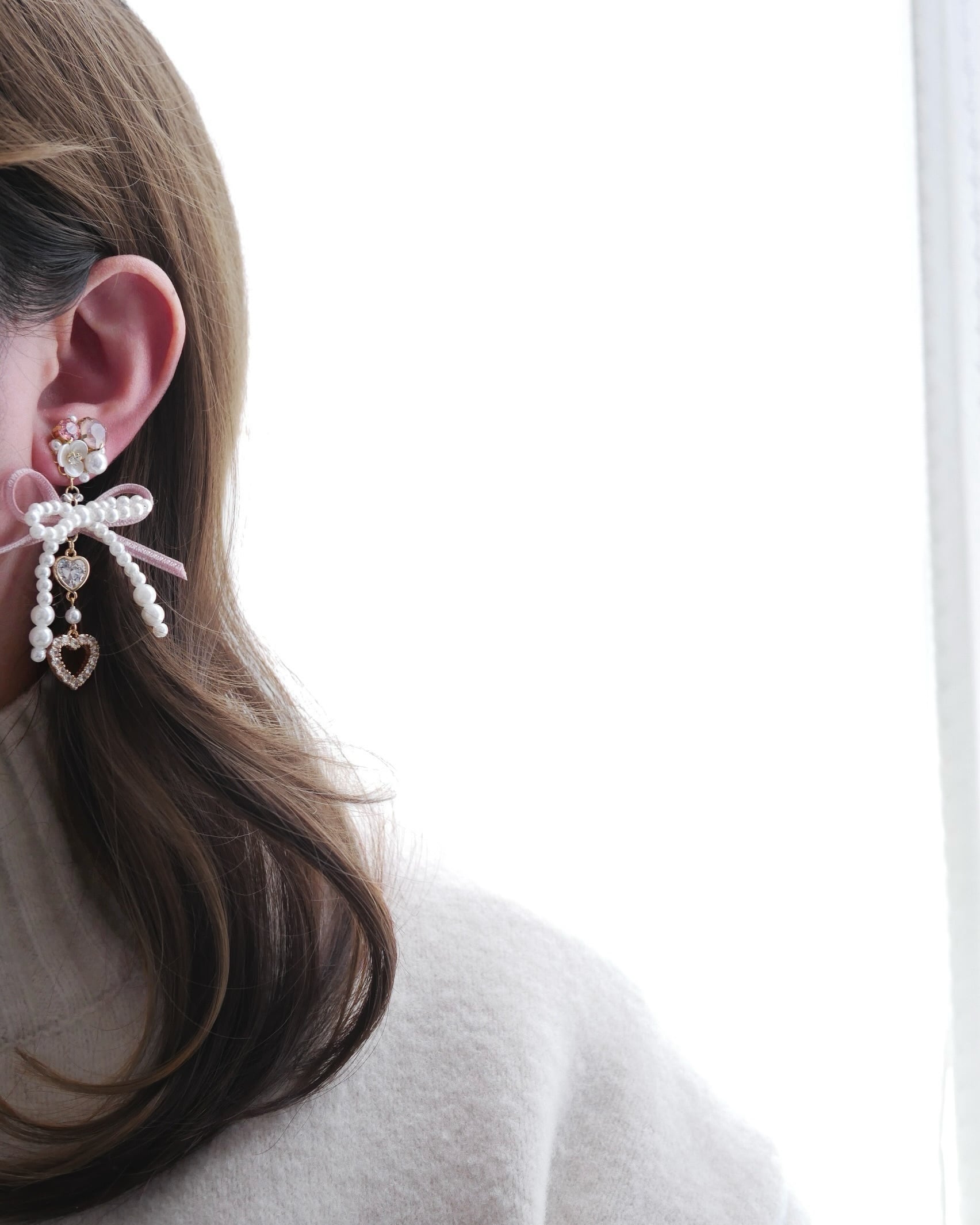 耳元で煌めくビジュー、