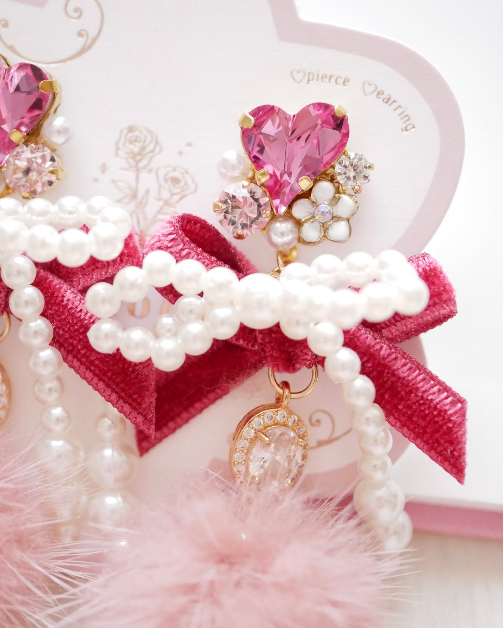 154 スウィートダブルリボンファービジューピアス/イヤリング