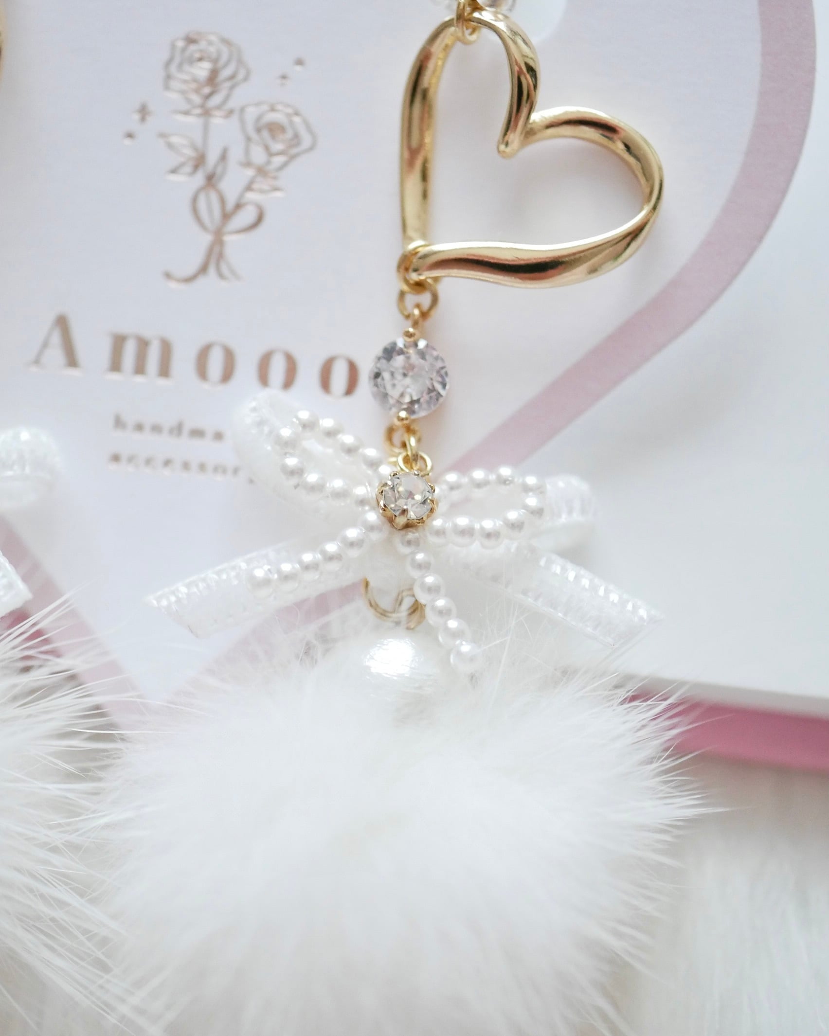 158 オープンハートガーリーリボンファーorパールピアス/イヤリング