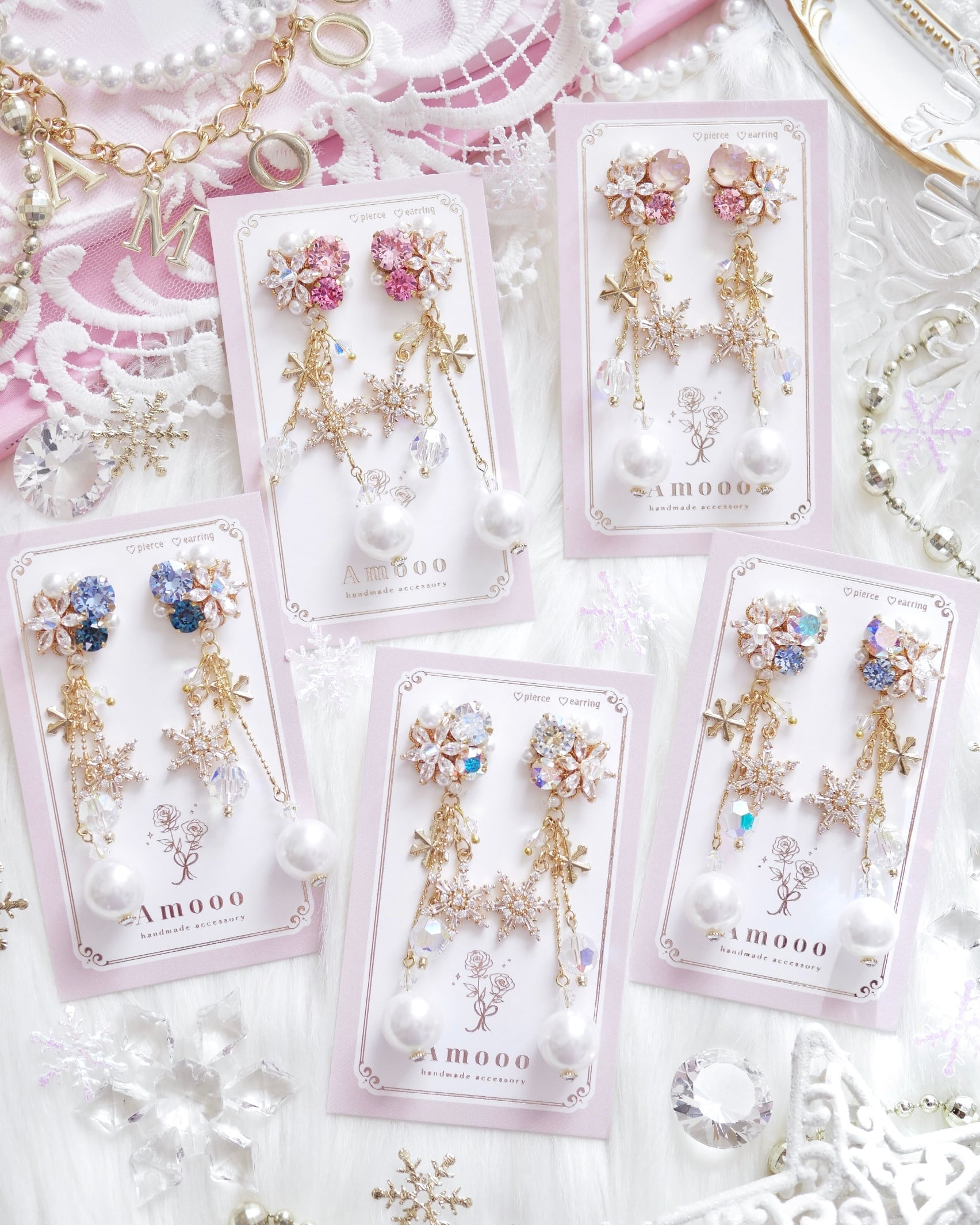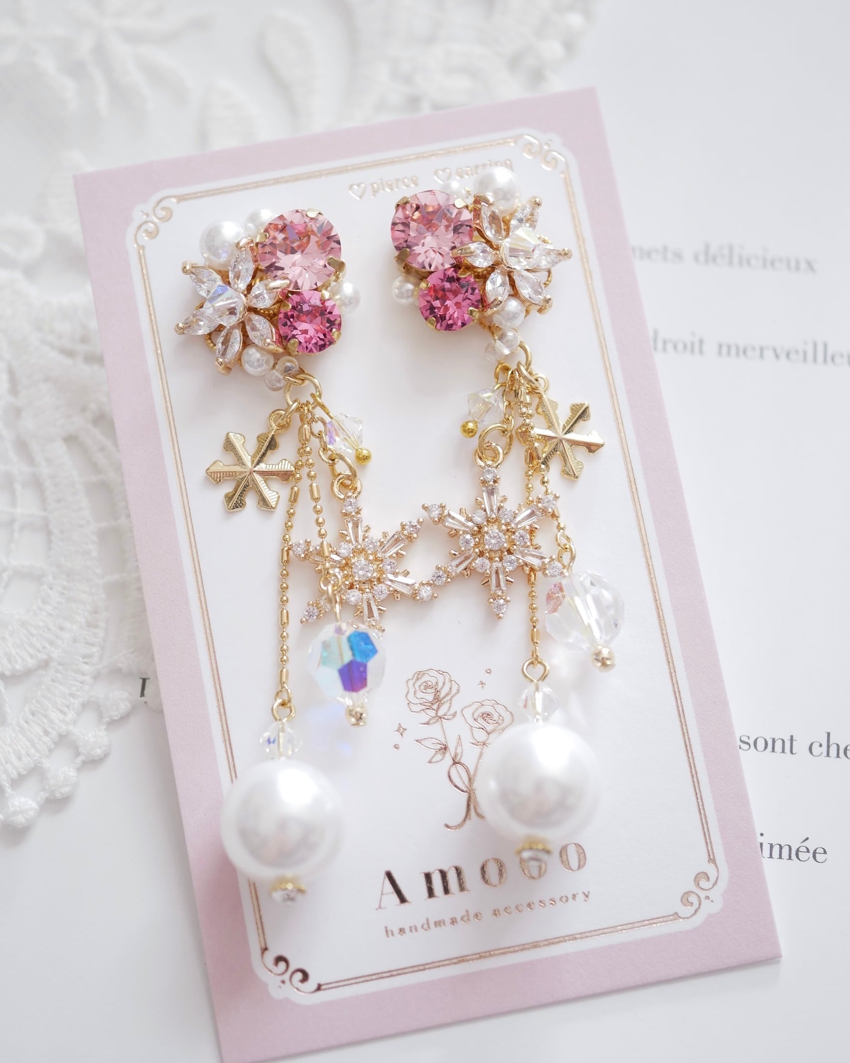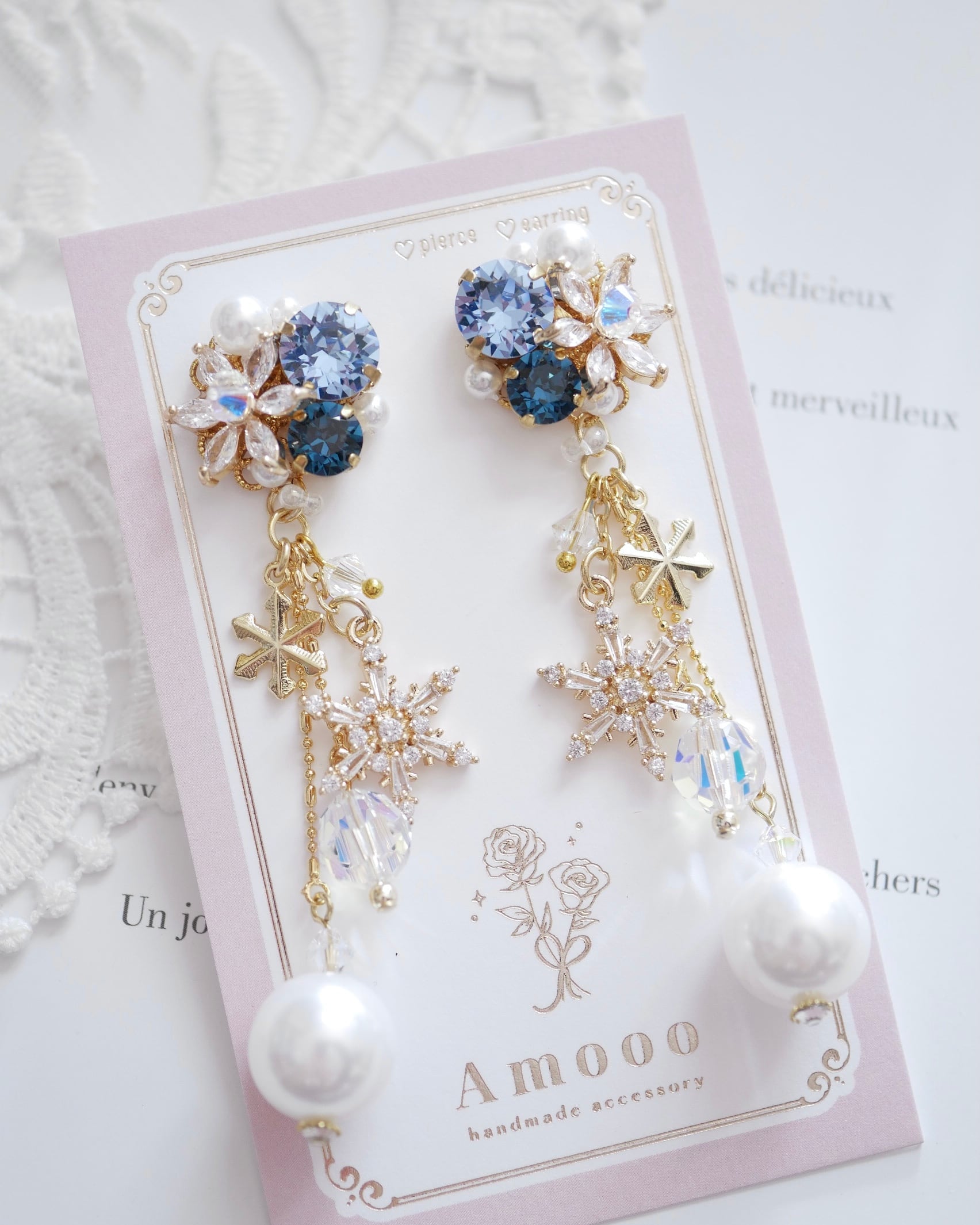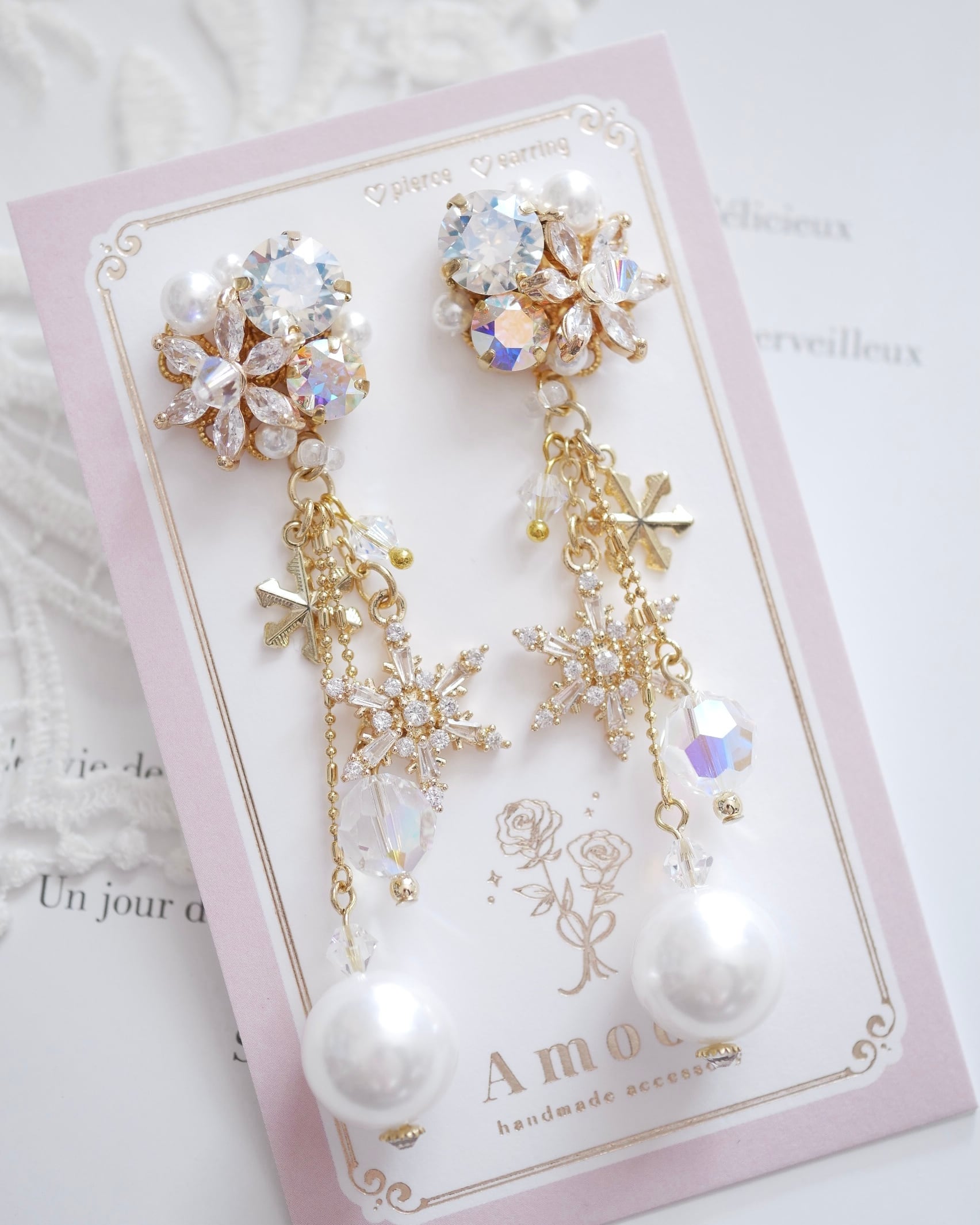 179 スノーフレークシャインチャームビジューピアス/イヤリング